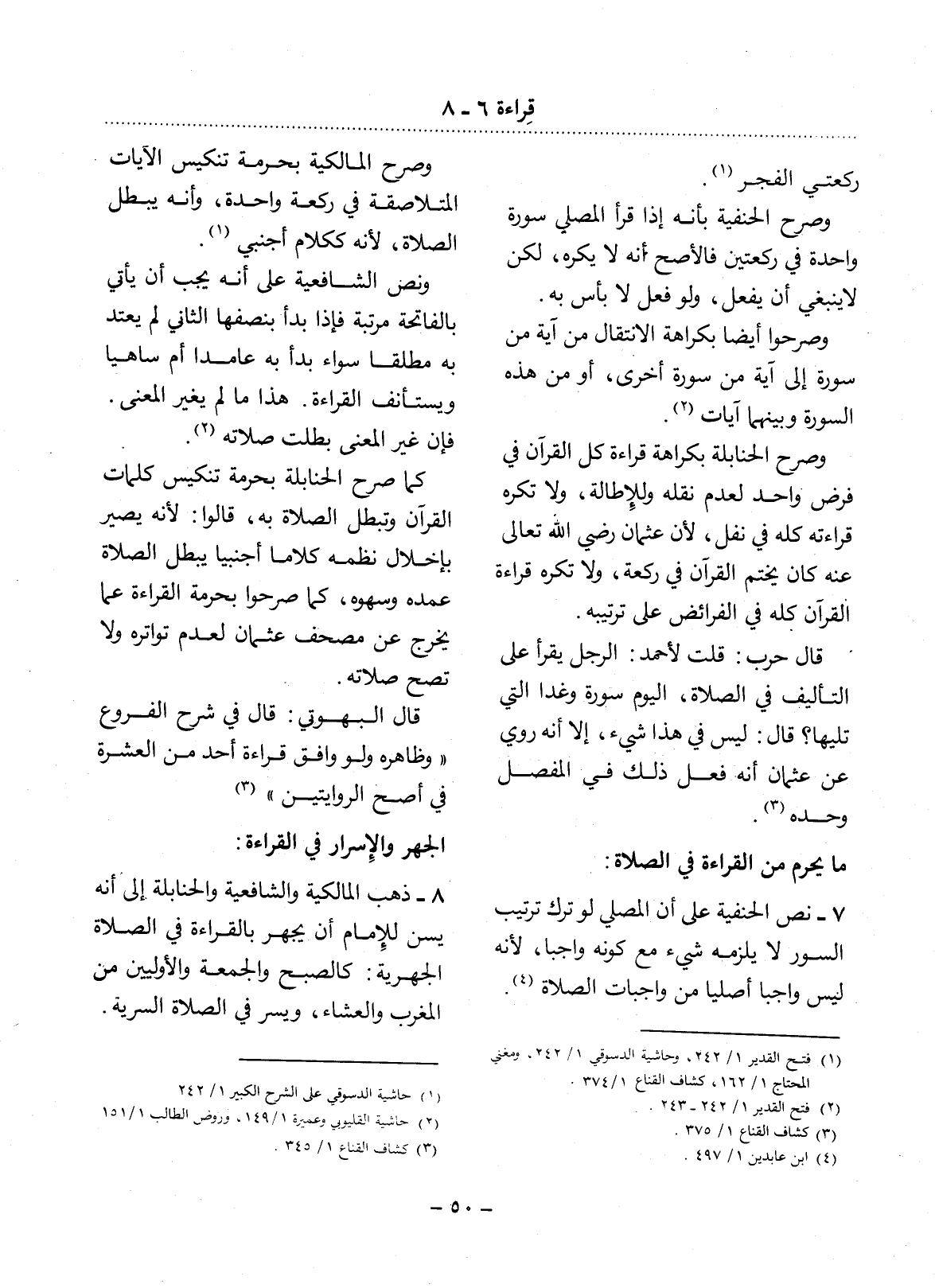 (1) فتح القدير 1 / 242، وحاشية الدسوقي 1 / 242، ومغني المحتاج 1 / 162، كشاف القناع 1 / 374.