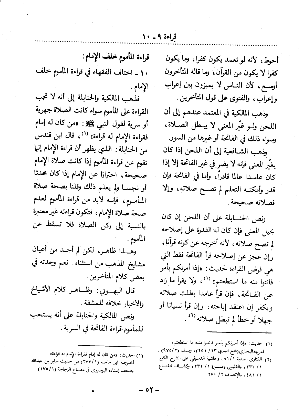 10 - اخْتَلَفَ الْفُقَهَاءُ فِي قِرَاءَةِ الْمَأْمُومِ خَلْفَ الإِْمَامِ.