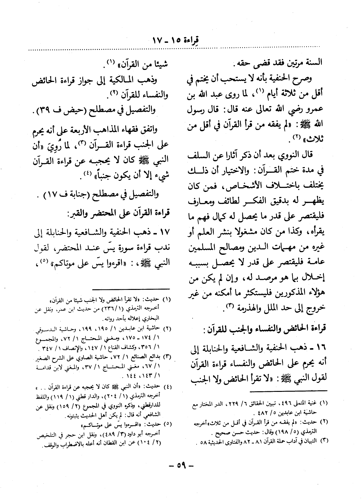 17 - ذَهَبَ الْحَنَفِيَّةُ وَالشَّافِعِيَّةُ وَالْحَنَابِلَةُ إِلَى نَدْبِ قِرَاءَةِ سُورَةِ يس عِنْدَ الْمُحْتَضَرِ، لِقَوْل النَّبِيِّ صَلَّى اللَّهُ عَلَيْهِ وَسَلَّمَ: اقْرَءُوا يس عَلَى مَوْتَاكُمْ (5) ،