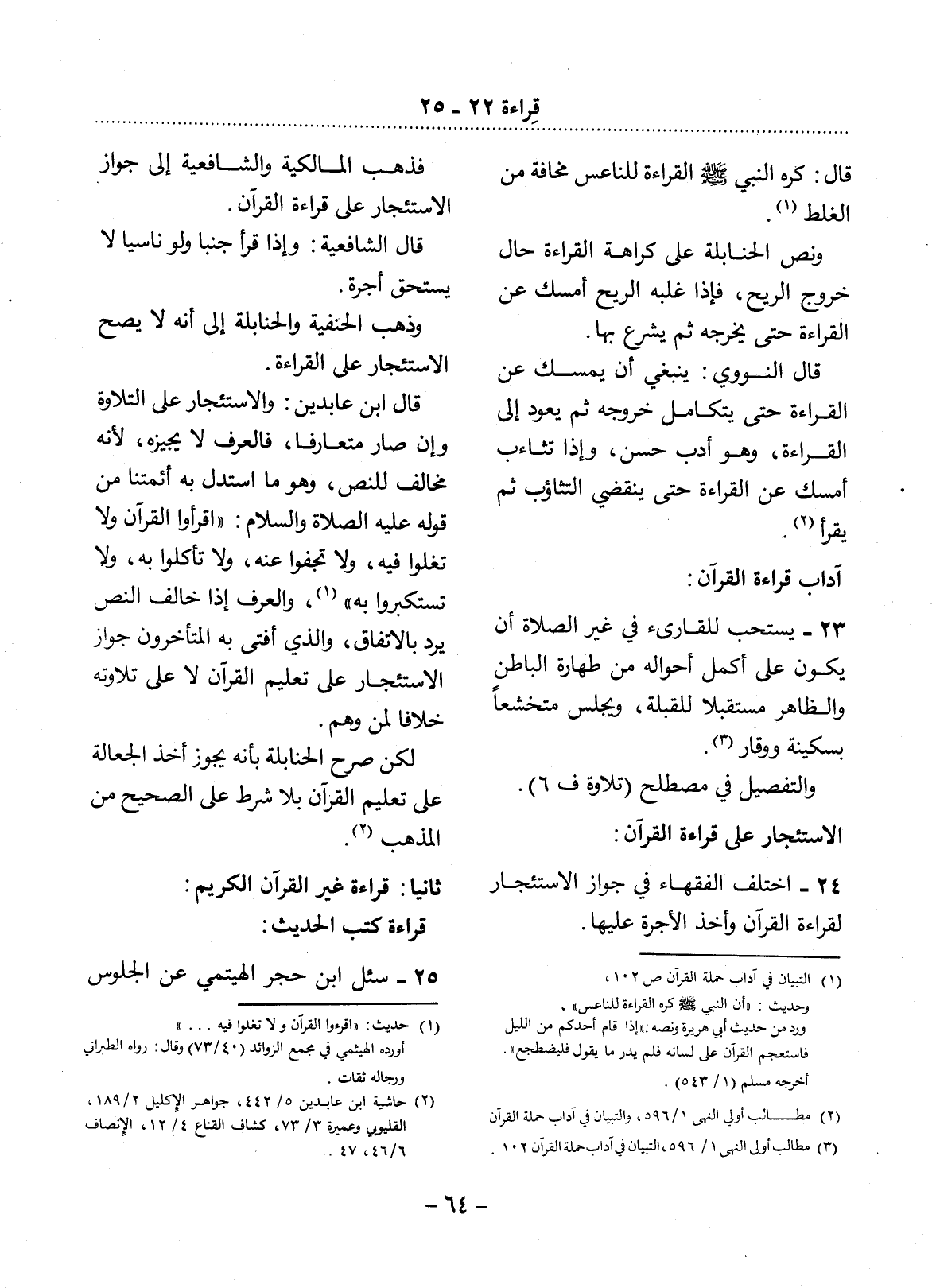 (2) مطالب أولي النهى 1 / 596، والتبيان في آداب حملة القرآن.
