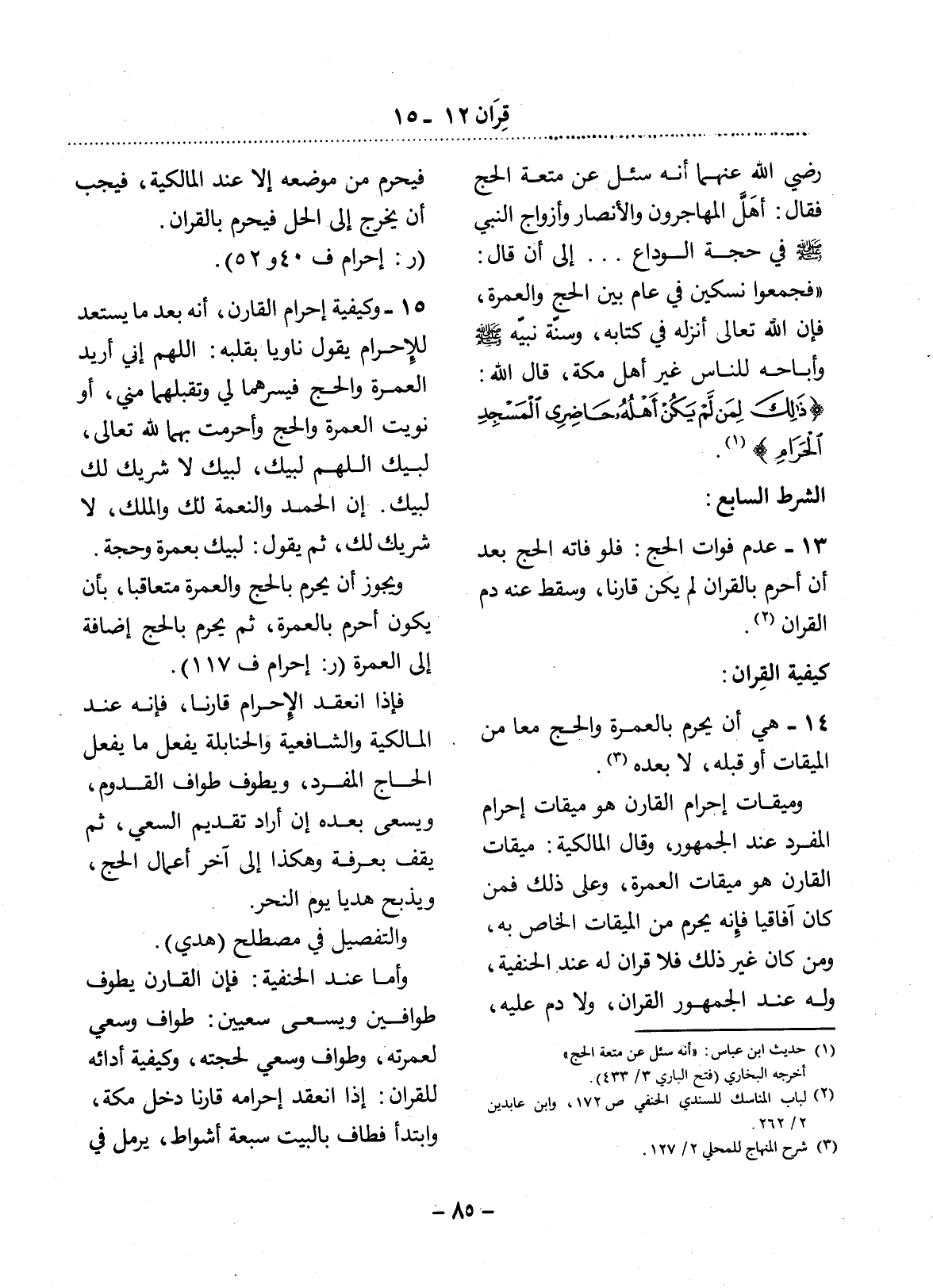 14 - هِيَ أَنْ يُحْرِمَ بِالْعُمْرَةِ وَالْحَجِّ مَعًا مِنَ الْمِيقَاتِ أَوْ قَبْلَهُ، لاَ بَعْدَهُ (3) .