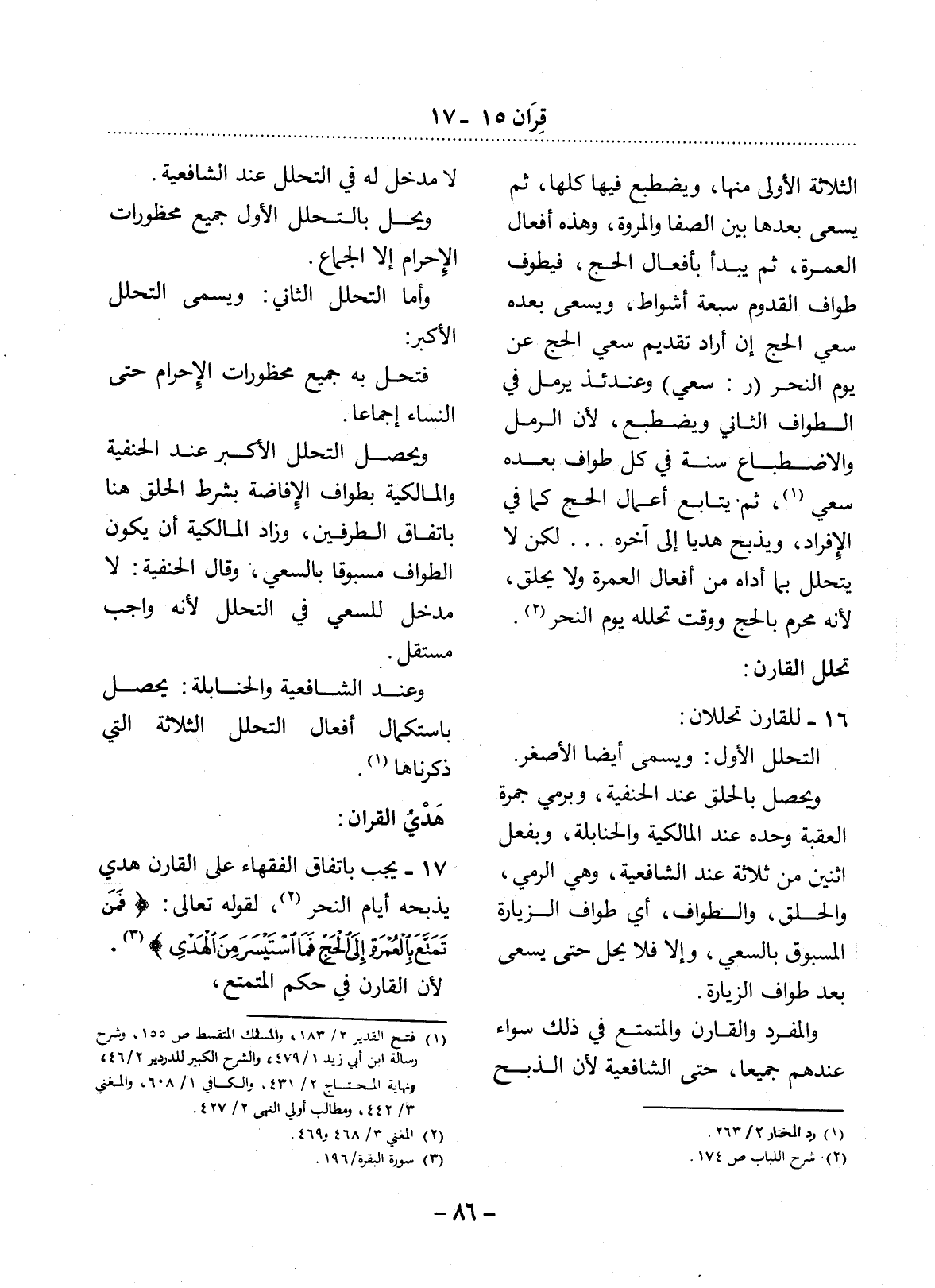 16 - لِلْقَارِنِ تَحَلُّلاَنِ: