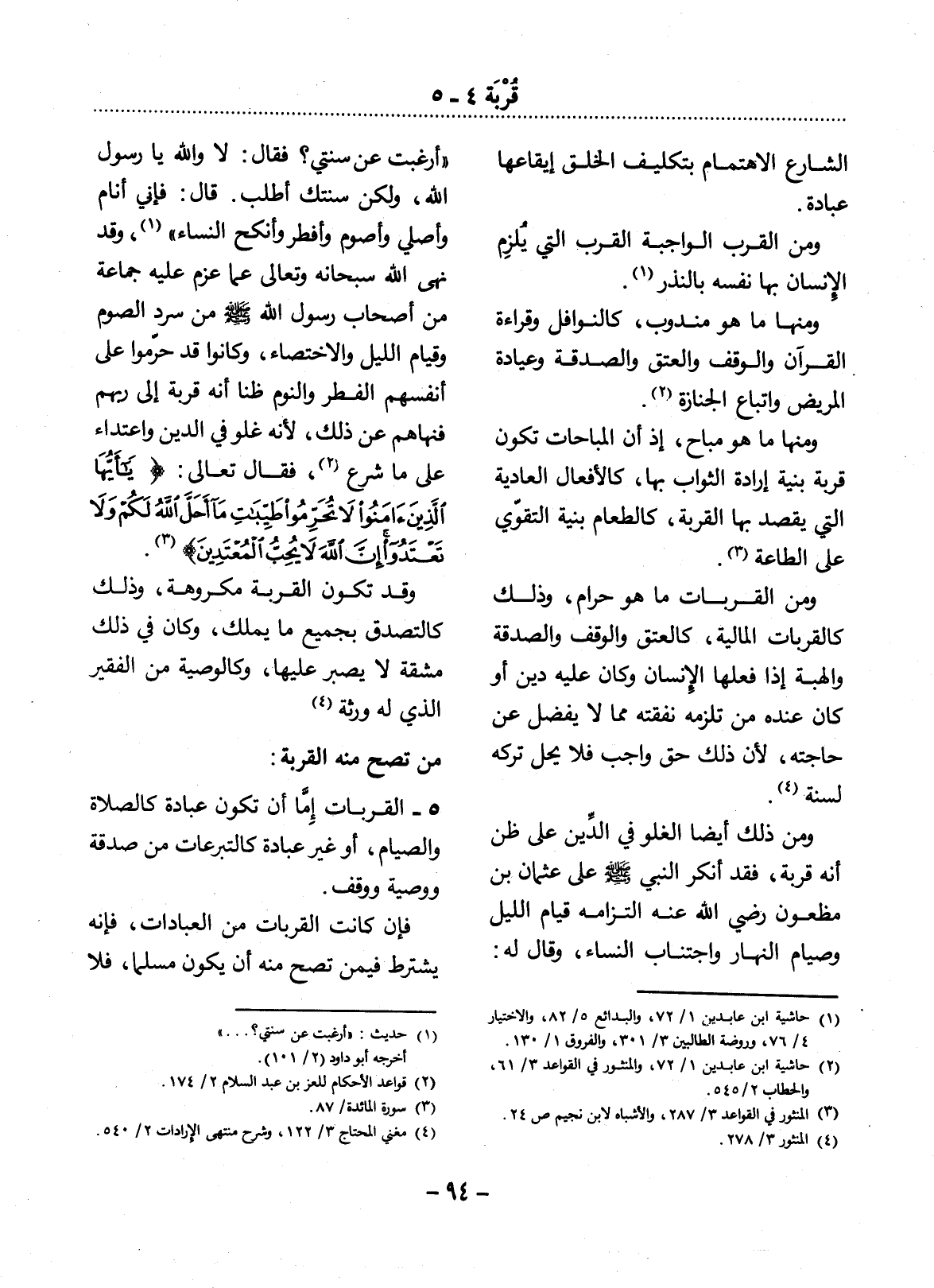 (1) حاشية ابن عابدين 1 / 72، والبدائع 5 / 82، والاختيار 4 / 76، وروضة الطالبين 3 / 301، والفروق 1 / 130.
