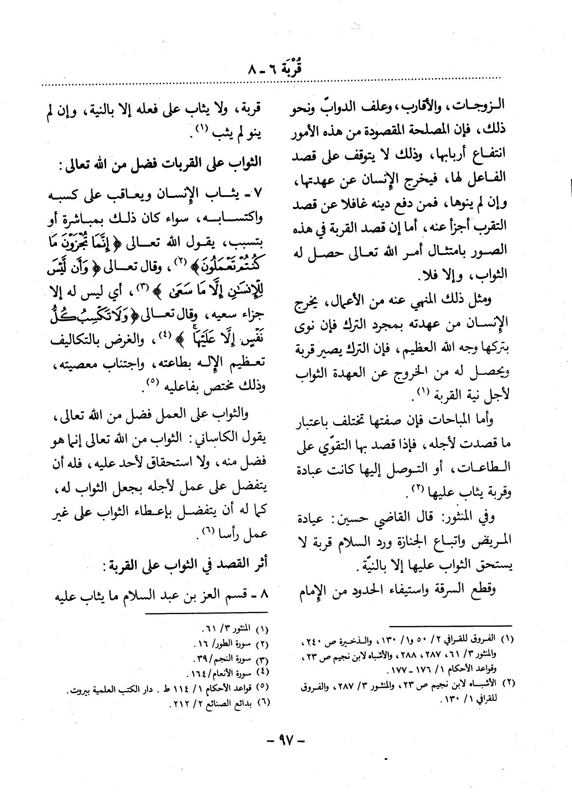 (1) الفروق للقرافي 2 / 50 و1 / 130، والذخيرة ص 240، والمنثور 3 / 61، 287، 288، والأشباه لابن نجيم ص 23، وقواعد الأحكام 1 / 176 - 177.