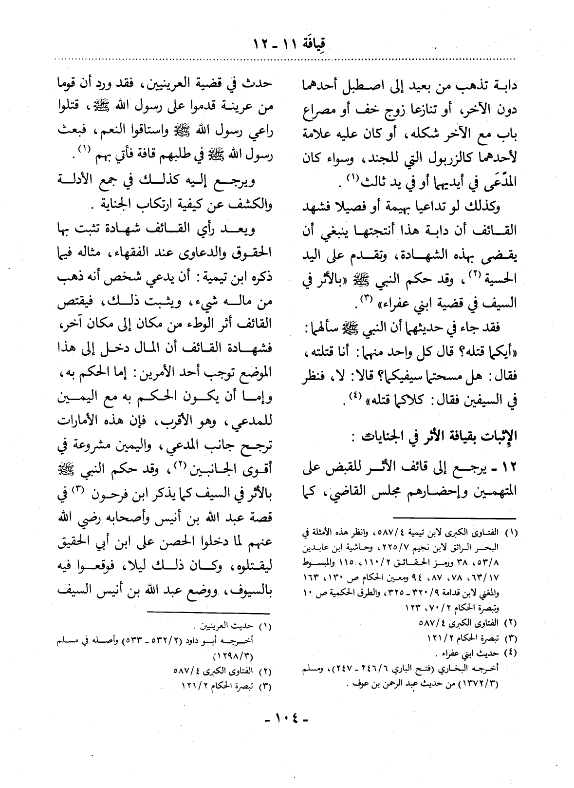 12 - يُرْجَعُ إِلَى قَائِفِ الأَْثَرِ لِلْقَبْضِ عَلَى الْمُتَّهَمِينَ وَإِحْضَارِهِمْ مَجْلِسَ الْقَاضِي، كَمَا