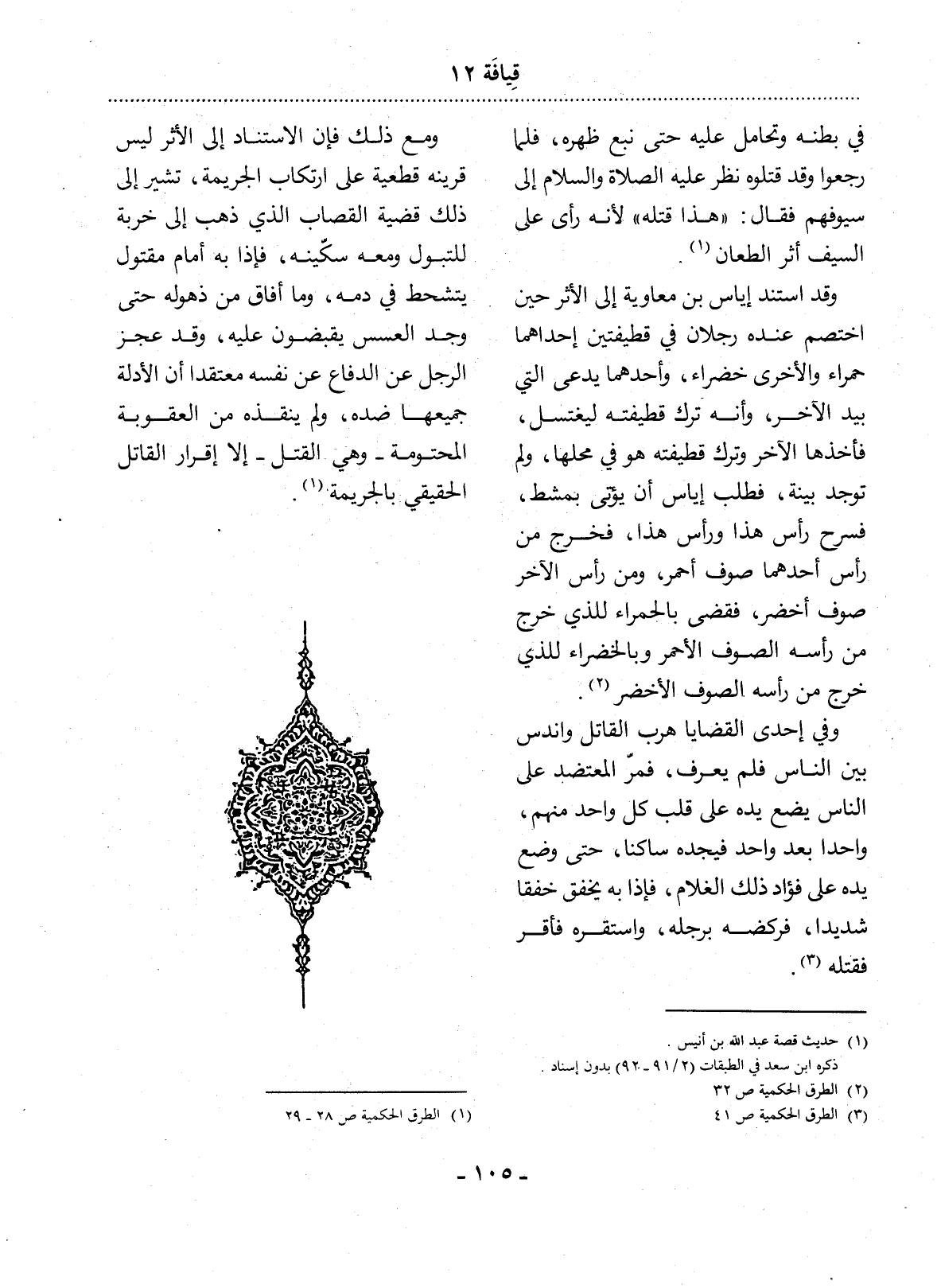 وَقَدِ اسْتَنَدَ إِيَاسُ بْنُ مُعَاوِيَةَ إِلَى الأَْثَرِ حِينَ اخْتَصَمَ عِنْدَهُ رَجُلاَنِ فِي قَطِيفَتَيْنِ إِحْدَاهُمَا حَمْرَاءُ وَالأُْخْرَى خَضْرَاءُ، وَأَحَدُهُمَا يَدَّعِي الَّتِي بِيَدِ الآْخَرِ، وَأَنَّهُ تَرَكَ قَطِيفَتَهُ لِيَغْتَسِل، فَأَخَذَهَا الآْخَرُ وَتَرَكَ قَطِيفَتَهُ هُوَ فِي مَحَلِّهَا، وَلَمْ تُوجَدْ بَيِّنَةٌ، فَطَلَبَ إِيَاسٌ أَنْ يُؤْتَى بِمُشْطٍ، فَسَرَّحَ رَأْسَ هَذَا وَرَأْسَ هَذَا، فَخَرَجَ مِنْ رَأْسِ أَحَدِهِمَا صُوفٌ أَحْمَرُ، وَمِنْ رَأْسِ الآْخَرِ صُوفٌ أَخْضَرُ، فَقَضَى بِالْحَمْرَاءِ لِلَّذِي خَرَجَ مِنْ رَأْسِهِ الصُّوفُ الأَْحْمَرُ وَبِالْخَضْرَاءِ لِلَّذِي خَرَجَ مِنْ رَأْسِهِ الصُّوفُ الأَْخْضَرُ (2) .