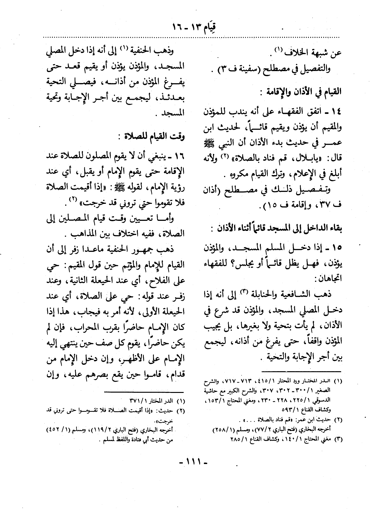 (2) حديث: " إذا أقيمت الصلاة فلا تقوموا حتى تروني قد خرجت ". أخرجه البخاري (فتح الباري 2 / 119) ، ومسلم (1 / 452) من حديث أبي قتادة واللفظ لمسلم.