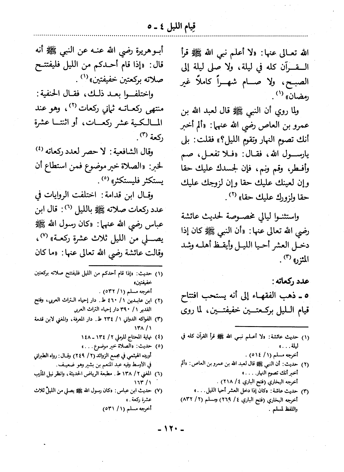 5 - ذَهَبَ الْفُقَهَاءُ إِلَى أَنَّهُ يُسْتَحَبُّ افْتِتَاحُ قِيَامِ اللَّيْل بِرَكْعَتَيْنِ خَفِيفَتَيْنِ، لِمَا رَوَى