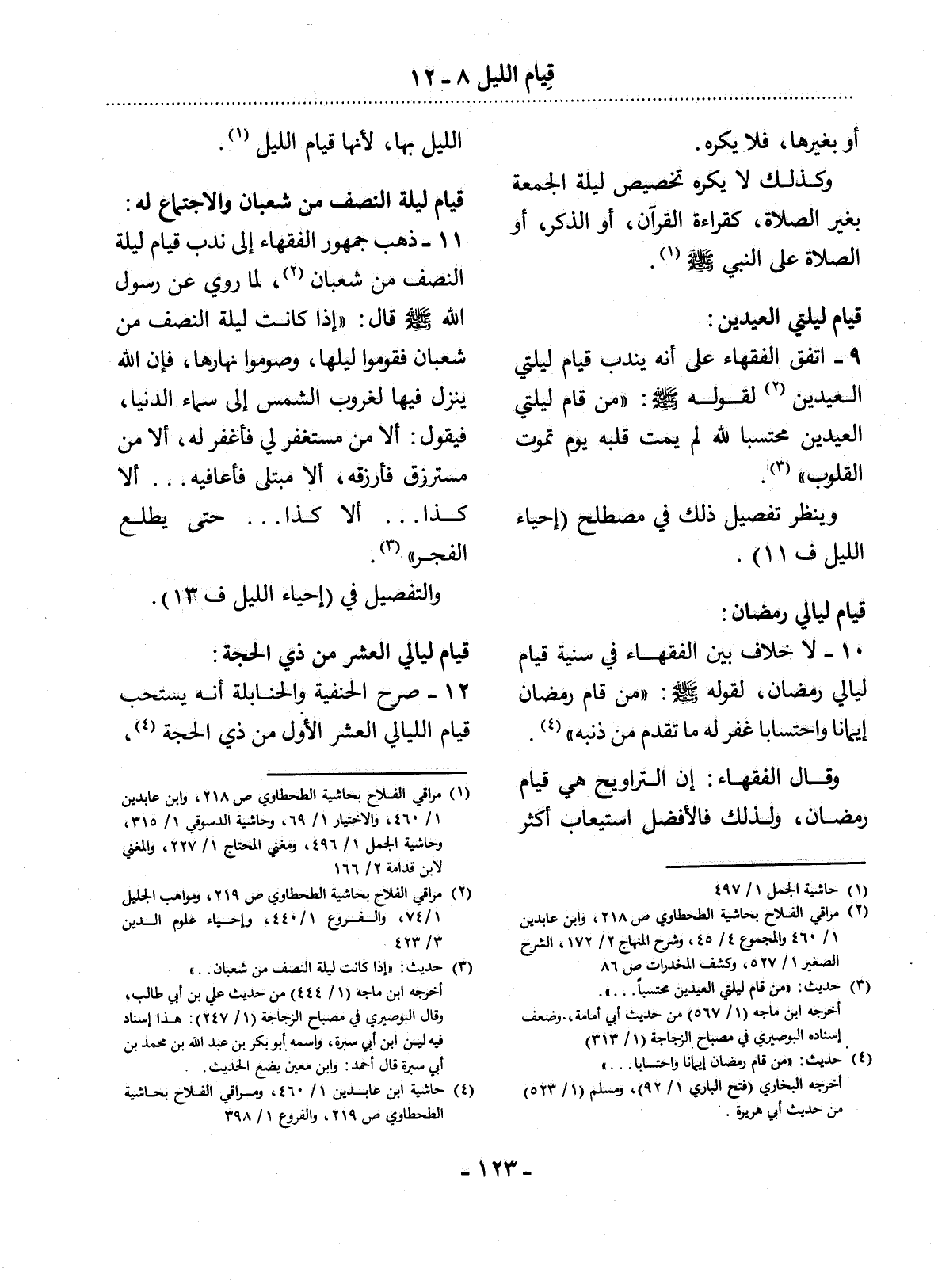 12 - صَرَّحَ الْحَنَفِيَّةُ وَالْحَنَابِلَةُ أَنَّهُ يُسْتَحَبُّ قِيَامُ اللَّيَالِيِ الْعَشْرِ الأُْوَّل مِنْ ذِي الْحِجَّةِ (4) ،