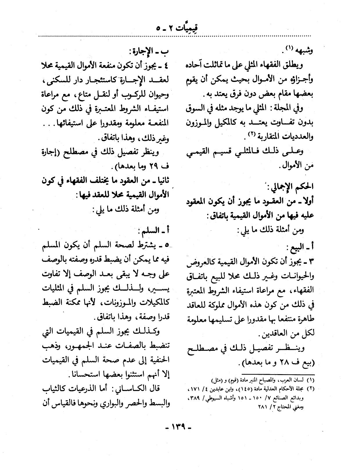 (2) مجلة الأحكام العدلية مادة (145) ، وابن عابدين 4 / 171، وبدائع الصنائع 7 / 150 - 151، وأشباه السيوطي / 389، ومغني المحتاج 2 / 281.