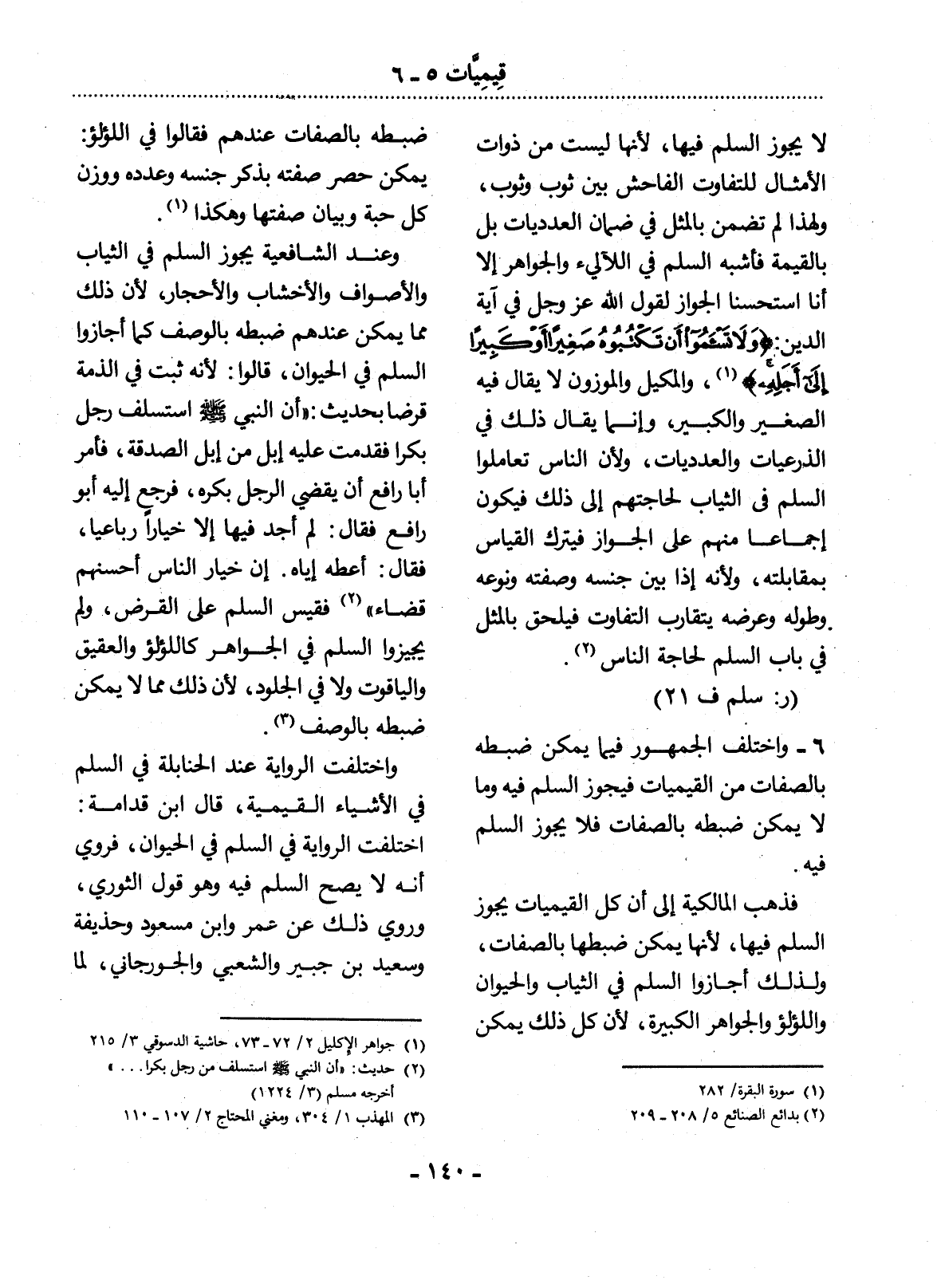 6 - وَاخْتَلَفَ الْجُمْهُورُ فِيمَا يُمْكِنُ ضَبْطُهُ بِالصِّفَاتِ مِنَ الْقِيَمِيَّاتِ فَيَجُوزُ السَّلَمُ فِيهِ وَمَا لاَ يُمْكِنُ ضَبْطُهُ بِالصِّفَاتِ فَلاَ يَجُوزُ السَّلَمُ فِيهِ.