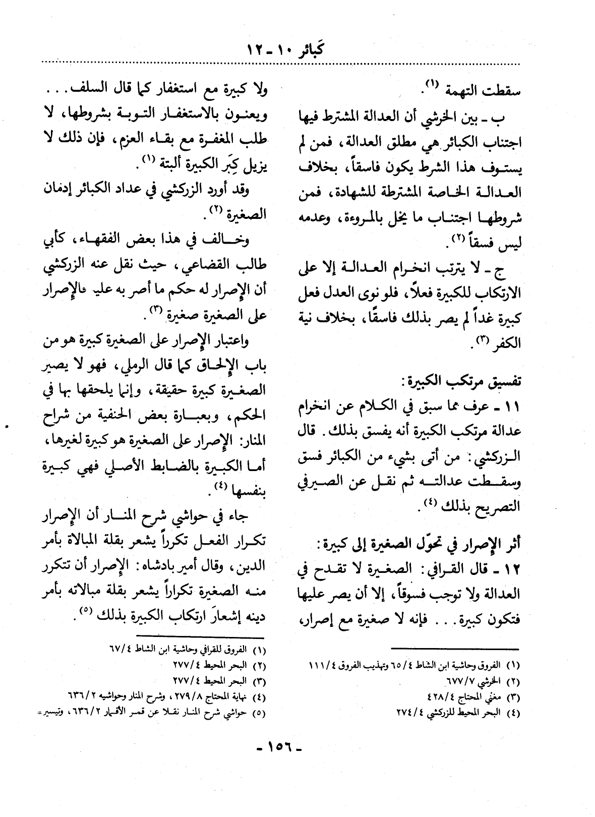 12 - قَال الْقَرَافِيُّ: الصَّغِيرَةُ لاَ تَقْدَحُ فِي الْعَدَالَةِ وَلاَ تُوجِبُ فُسُوقًا، إِلاَّ أَنْ يُصِرَّ عَلَيْهَا فَتَكُونُ كَبِيرَةً. . . فَإِنَّهُ لاَ صَغِيرَةَ مَعَ إِصْرَارٍ،