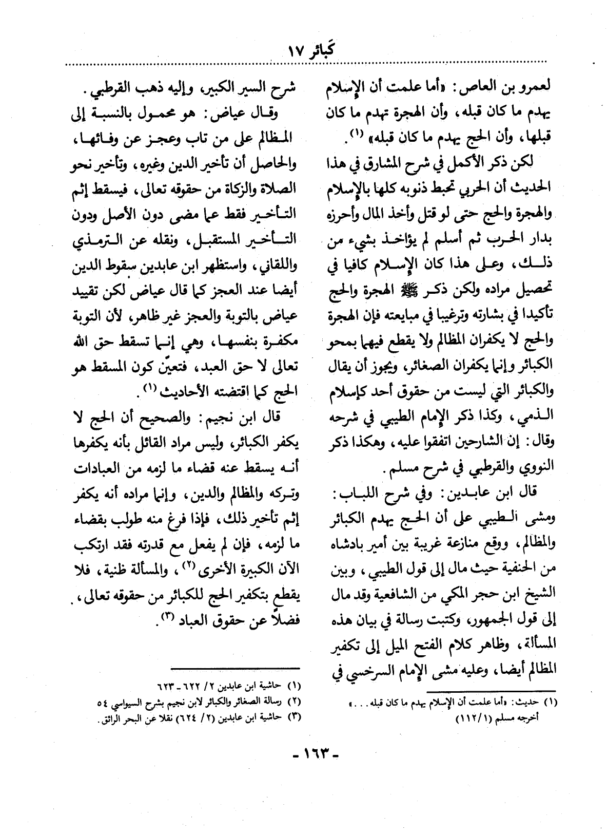 (1) حديث: " أما علمت أن الإسلام يهدم ما كان قبله. . . ". أخرجه مسلم (1 / 112) .