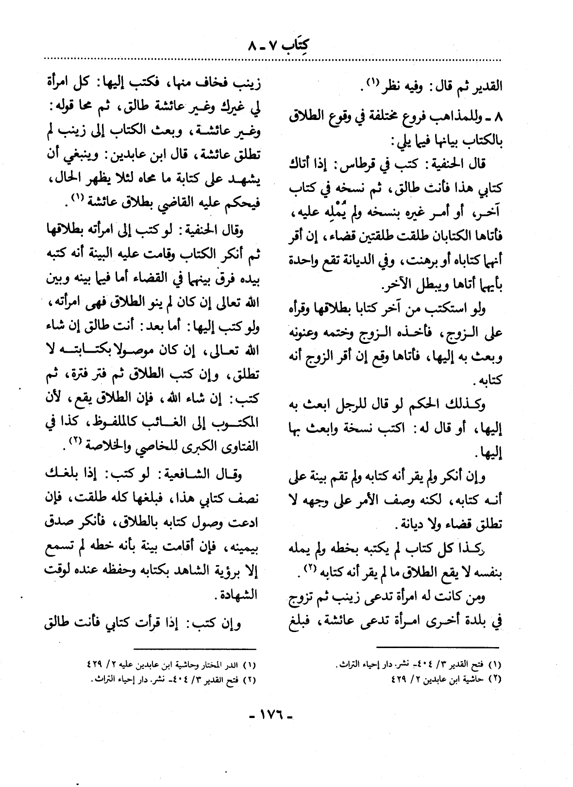 8 - وَلِلْمَذَاهِبِ فُرُوعٌ مُخْتَلِفَةٌ فِي وُقُوعِ الطَّلاَقِ بِالْكِتَابِ بَيَانُهَا فِيمَا يَلِي: