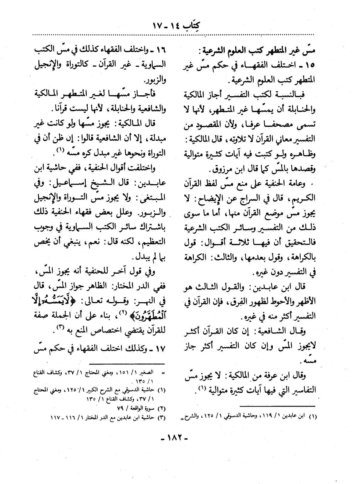15 - اخْتَلَفَ الْفُقَهَاءُ فِي حُكْمِ مَسِّ غَيْرِ الْمُتَطَهِّرِ كُتُبَ الْعُلُومِ الشَّرْعِيَّةِ.