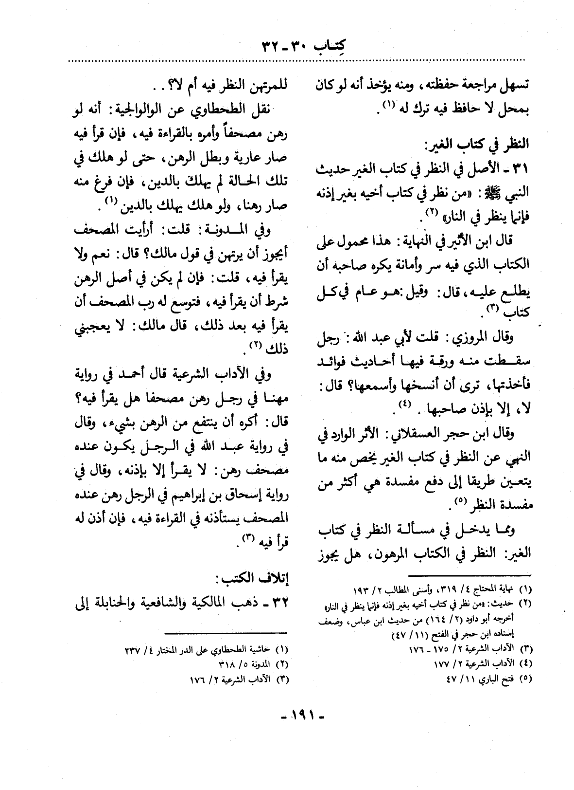 31 - الأَْصْل فِي النَّظَرِ فِي كِتَابِ الْغَيْرِ حَدِيثُ النَّبِيِّ صَلَّى اللَّهُ عَلَيْهِ وَسَلَّمَ: مَنْ نَظَرَ فِي كِتَابِ أَخِيهِ بِغَيْرِ إِذْنِهِ فَإِنَّمَا يَنْظُرُ فِي النَّارِ (2) .