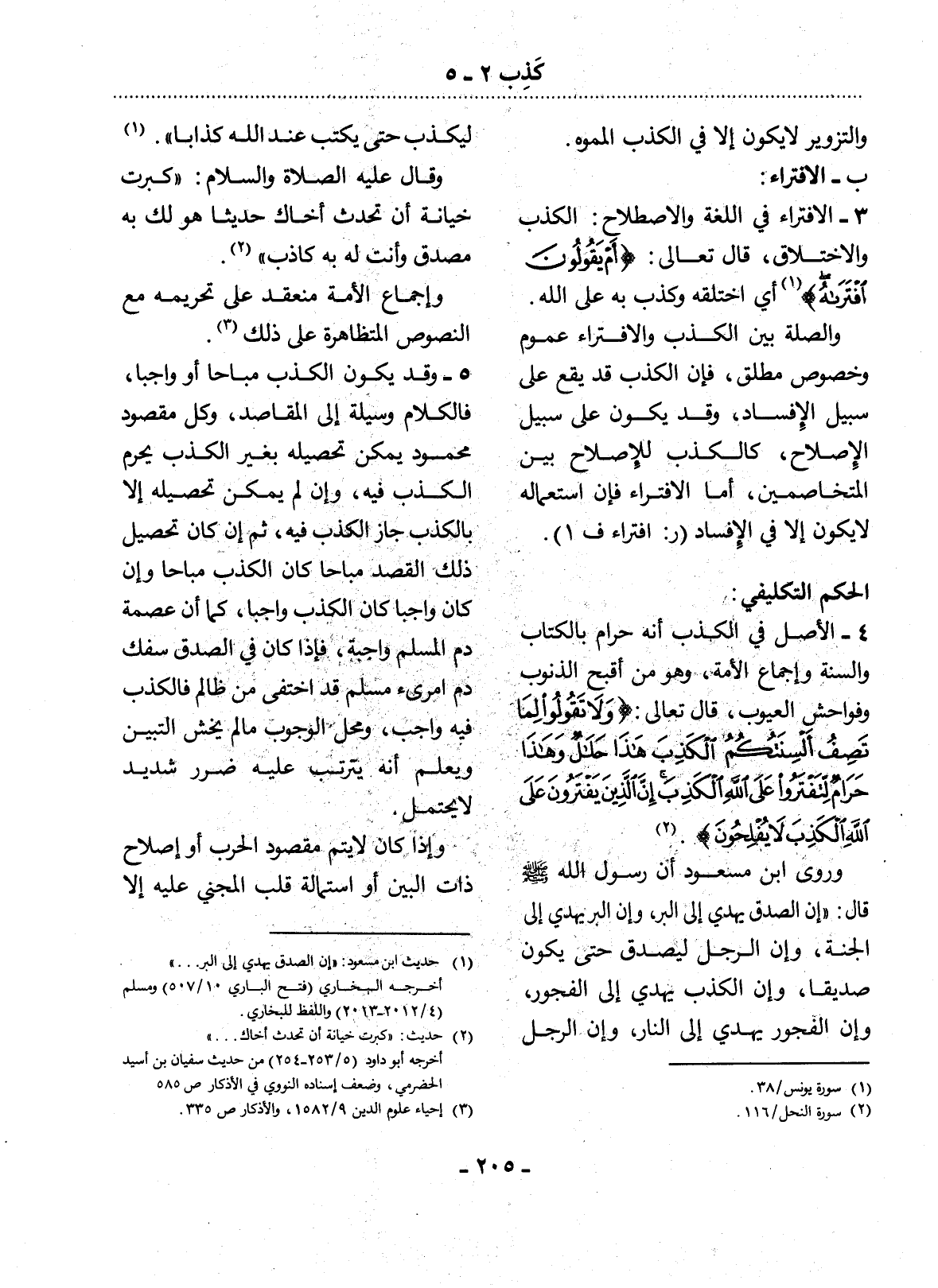 4 - الأَْصْل فِي الْكَذِبِ أَنَّهُ حَرَامٌ بِالْكِتَابِ وَالسُّنَّةِ وَإِجْمَاعِ الأُْمَّةِ، وَهُوَ مِنْ أَقْبَحِ الذُّنُوبِ وَفَوَاحِشِ الْعُيُوبِ، قَال تَعَالَى: {وَلاَ تَقُولُوا لِمَا تَصِفُ أَلْسِنَتُكُمُ الْكَذِبَ هَذَا حَلاَلٌ وَهَذَا حَرَامٌ لِتَفْتَرُوا عَلَى اللَّهِ الْكَذِبَ إِنَّ الَّذِينَ يَفْتَرُونَ عَلَى اللَّهِ الْكَذِبَ لاَ يُفْلِحُونَ} (2) .