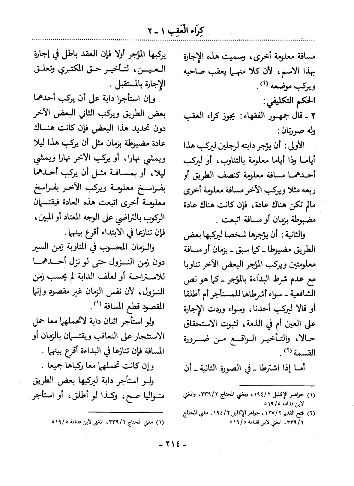 (1) جواهر الإكليل 2 / 194، ومغني المحتاج 2 / 339، والمغني لابن قدامة 5 / 519.