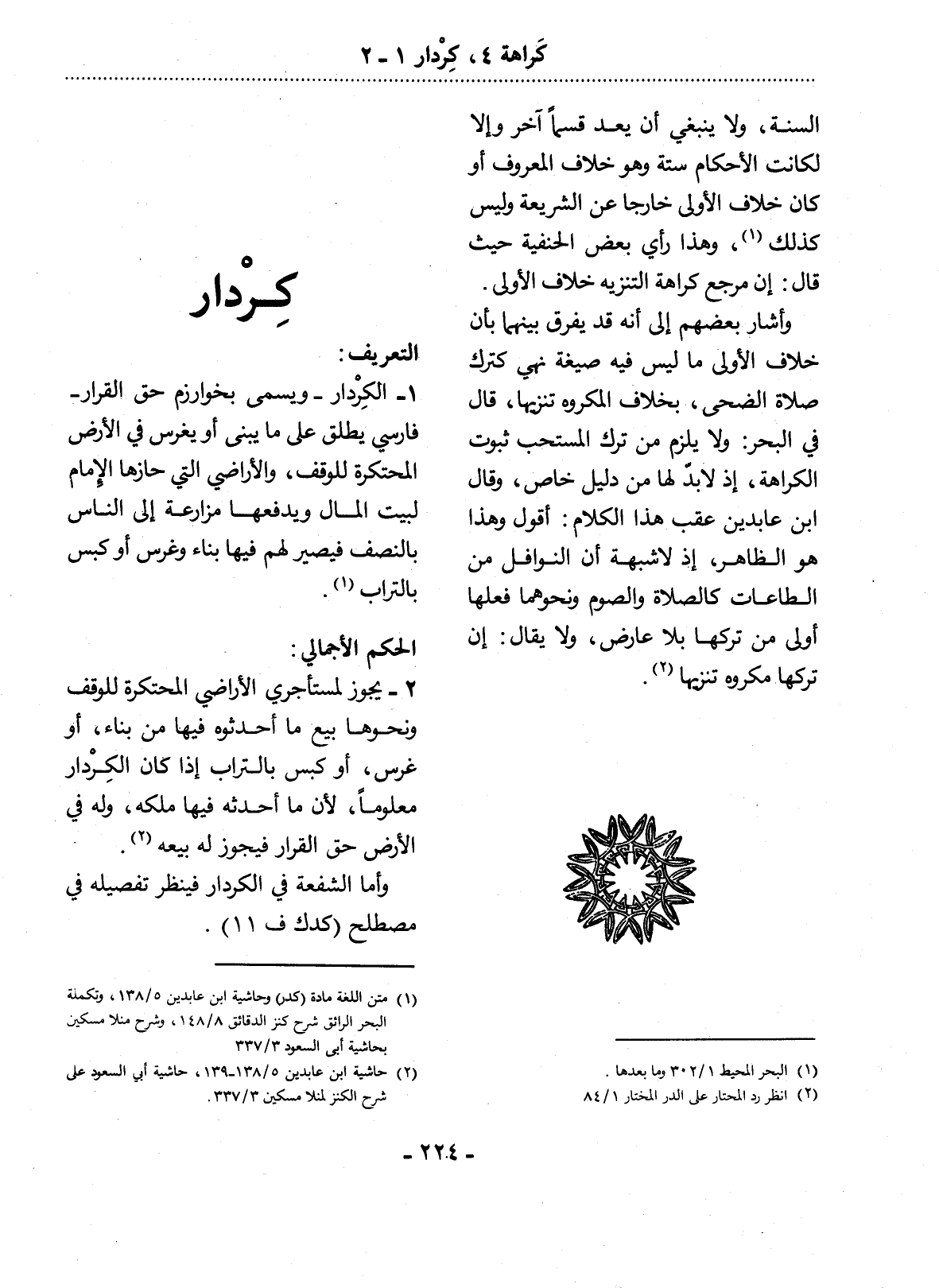 (2) حاشية ابن عابدين 5 / 138 - 139، حاشية أبي السعود على شرح الكنز لمنلا مسكين 3 / 337.