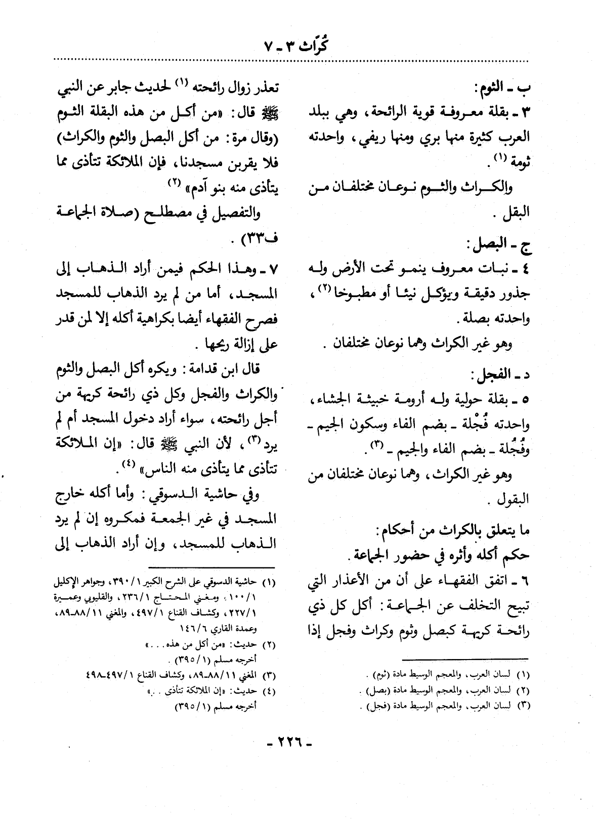 مَا يَتَعَلَّقُ بِالْكُرَّاثِ مِنْ أَحْكَامٍ: