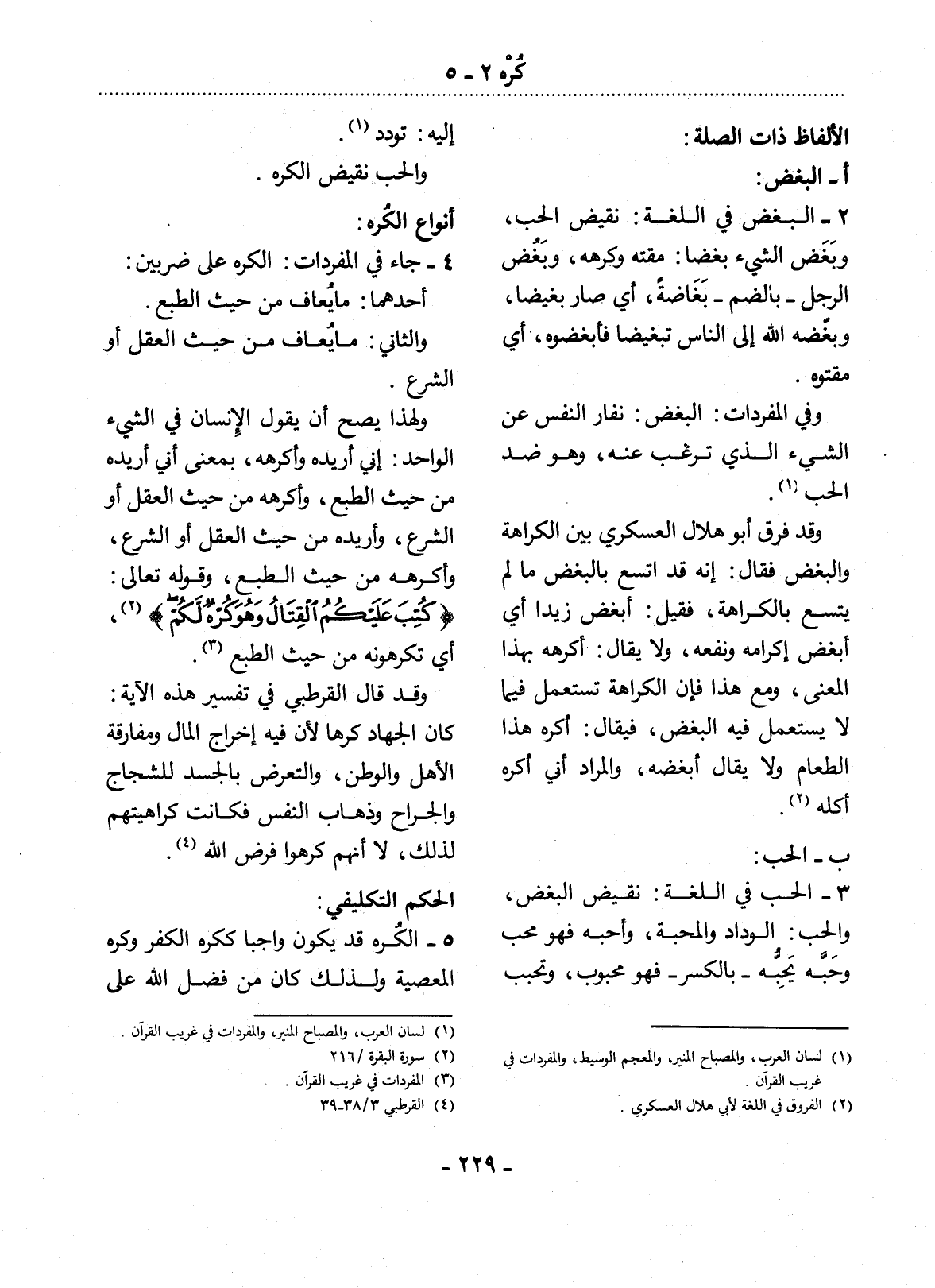 (1) لسان العرب، والمصباح المنير، والمفردات في غريب القرآن.