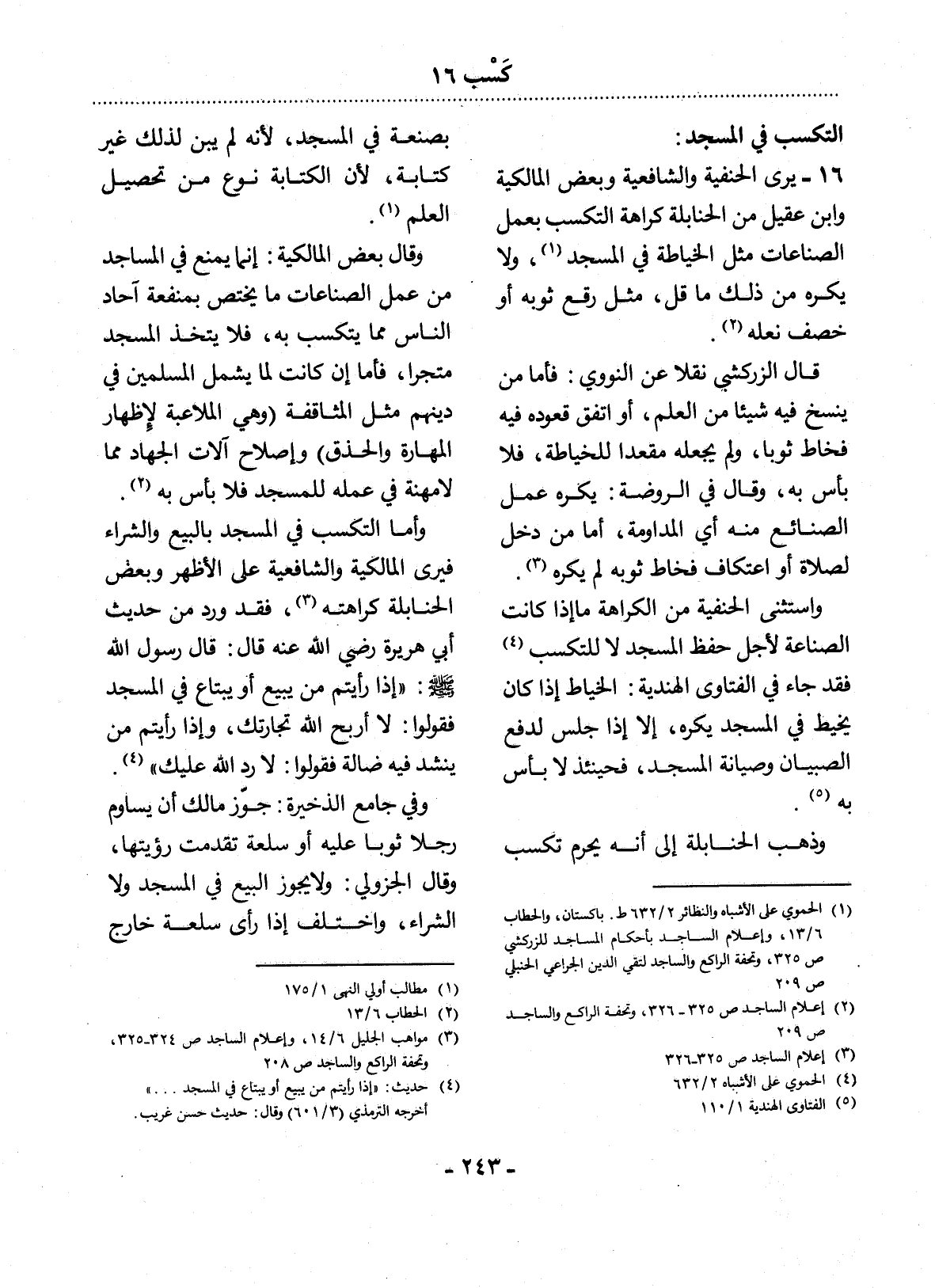 (1) الحموي على الأشباه والنظائر 2 / 632 ط. باكستان، والحطاب 6 / 13، وإعلام الساجد بأحكام المساجد للزركشي ص 325، وتحفة الراكع والساجد لتقي الدين الجراعي الحنبلي ص 209.