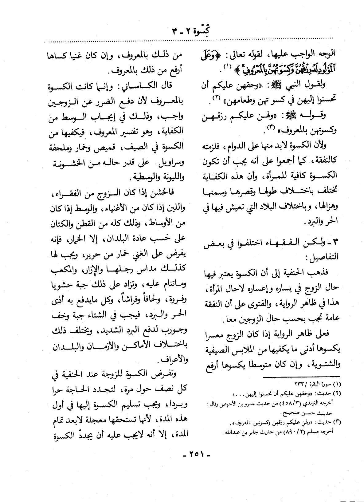 وَقَوْلِهِ صَلَّى اللَّهُ عَلَيْهِ وَسَلَّمَ: وَلَهُنَّ عَلَيْكُمْ رِزْقُهُنَّ وَكِسْوَتُهُنَّ بِالْمَعْرُوفِ (3) .