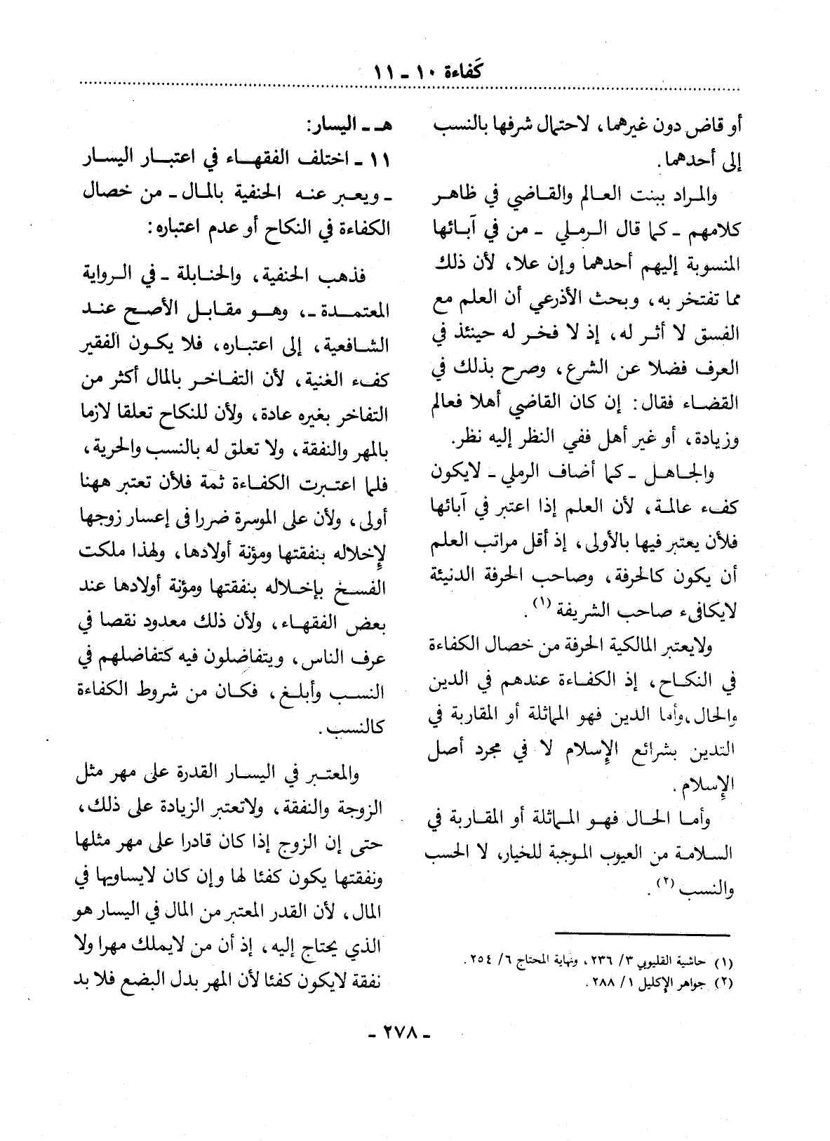 11 - اخْتَلَفَ الْفُقَهَاءُ فِي اعْتِبَارِ الْيَسَارِ - وَيُعَبِّرُ عَنْهُ الْحَنَفِيَّةُ بِالْمَال - مِنْ خِصَال الْكَفَاءَةِ فِي النِّكَاحِ أَوْ عَدَمِ اعْتِبَارِهِ: