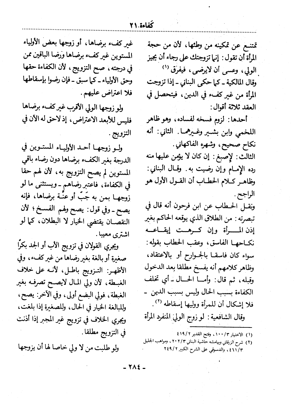 (2) شرح الزرقاني وبهامشه حاشية البناني 3 / 202، ومواهب الجليل 3 / 461، والدسوقي على الشرح الكبير 2 / 249.