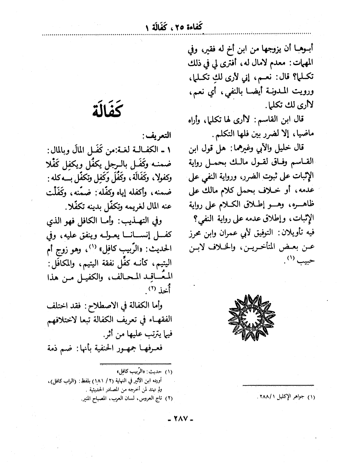 (1) جواهر الإكليل 1 / 288.