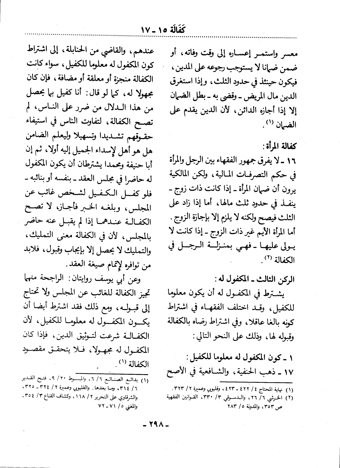 16 - لاَ يُفَرِّقُ جُمْهُورُ الْفُقَهَاءِ بَيْنَ الرَّجُل وَالْمَرْأَةِ فِي حُكْمِ التَّصَرُّفَاتِ الْمَالِيَّةِ، وَلَكِنَّ الْمَالِكِيَّةَ يَرَوْنَ أَنَّ ضَمَانَ الْمَرْأَةِ - إِذَا كَانَتْ ذَاتَ زَوْجٍ - يَنْفُذُ فِي حُدُودِ ثُلُثِ مَالِهَا، أَمَّا إِذَا زَادَ عَلَى الثُّلُثِ فَيَصِحُّ وَلَكِنَّهُ لاَ يَلْزَمُ إِلاَّ بِإِجَازَةِ الزَّوْجِ. أَمَّا الْمَرْأَةُ الأَْيِّمُ غَيْرُ ذَاتِ الزَّوْجِ - إِذَا كَانَتْ لاَ يُوَلَّى عَلَيْهَا - فَهِيَ بِمَنْزِلَةِ الرَّجُل فِي الْكَفَالَةِ (2) .