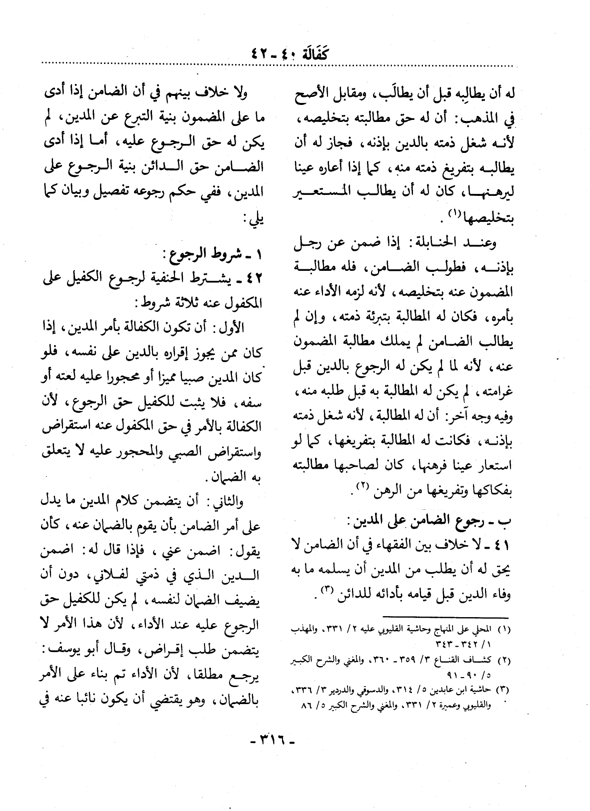 42 - يَشْتَرِطُ الْحَنَفِيَّةُ لِرُجُوعِ الْكَفِيل عَلَى الْمَكْفُول عَنْهُ ثَلاَثَةَ شُرُوطٍ: