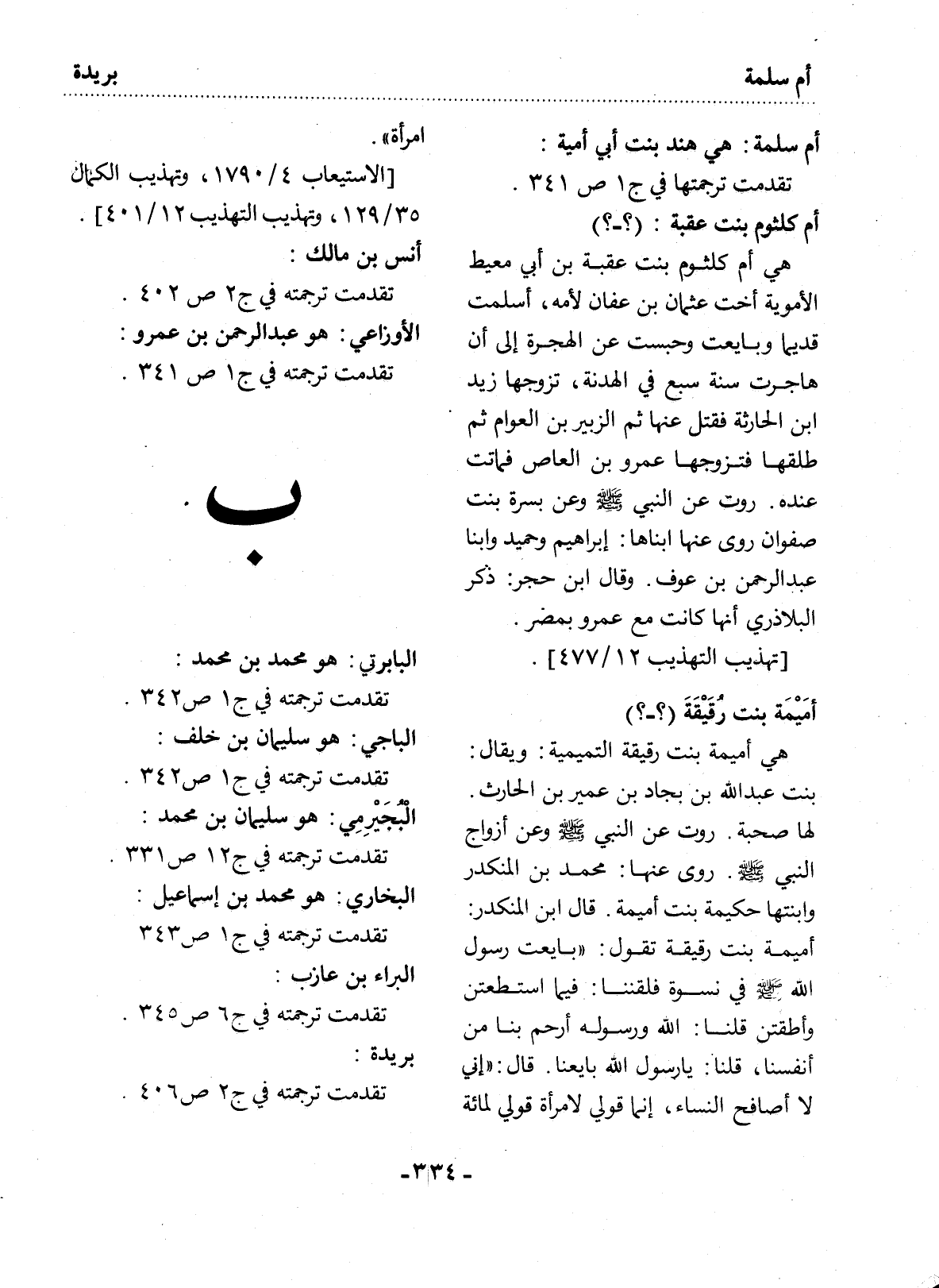 امرأة ". [الاستيعاب 4 / 1790] وتهذيب الكمال 35 / 129، وتهذيب التهذيب 12 / 401] .