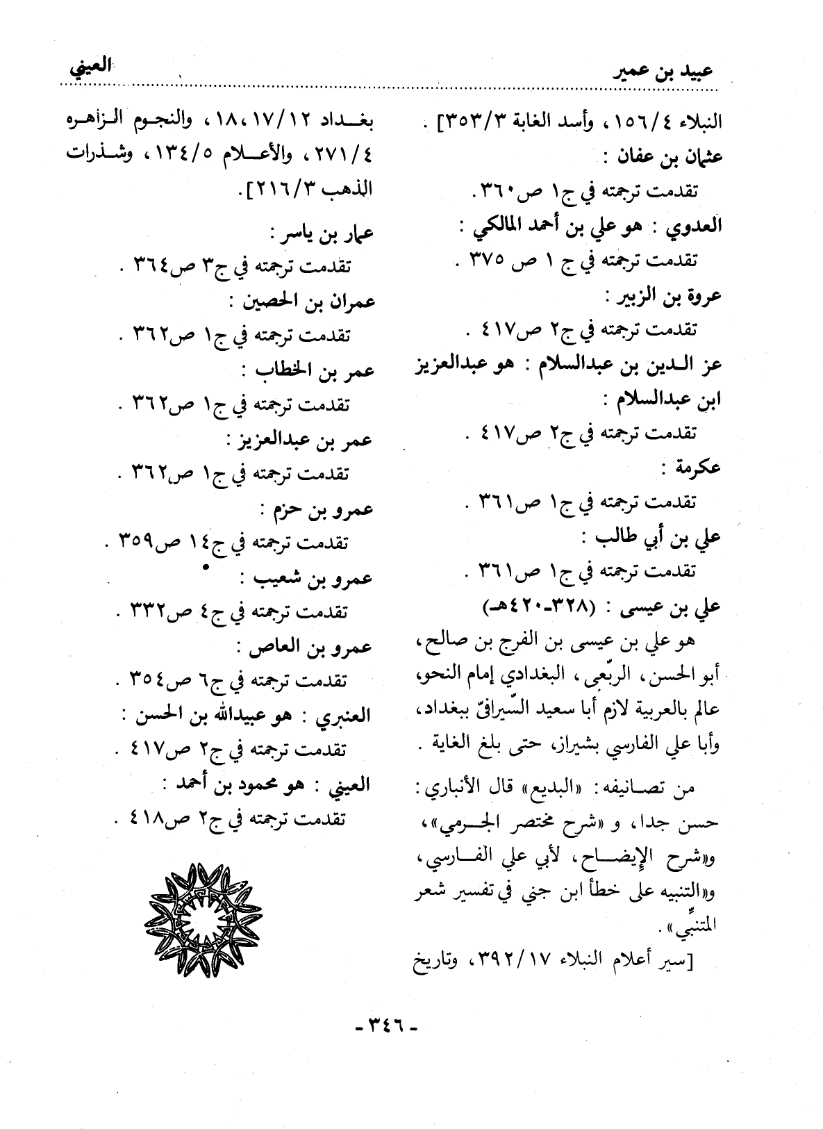 بغداد 12 / 17، 18، والنجوم الزاهرة 4 / 271، والأعلام 5 / 134، وشذرات الذهب 3 / 216] .