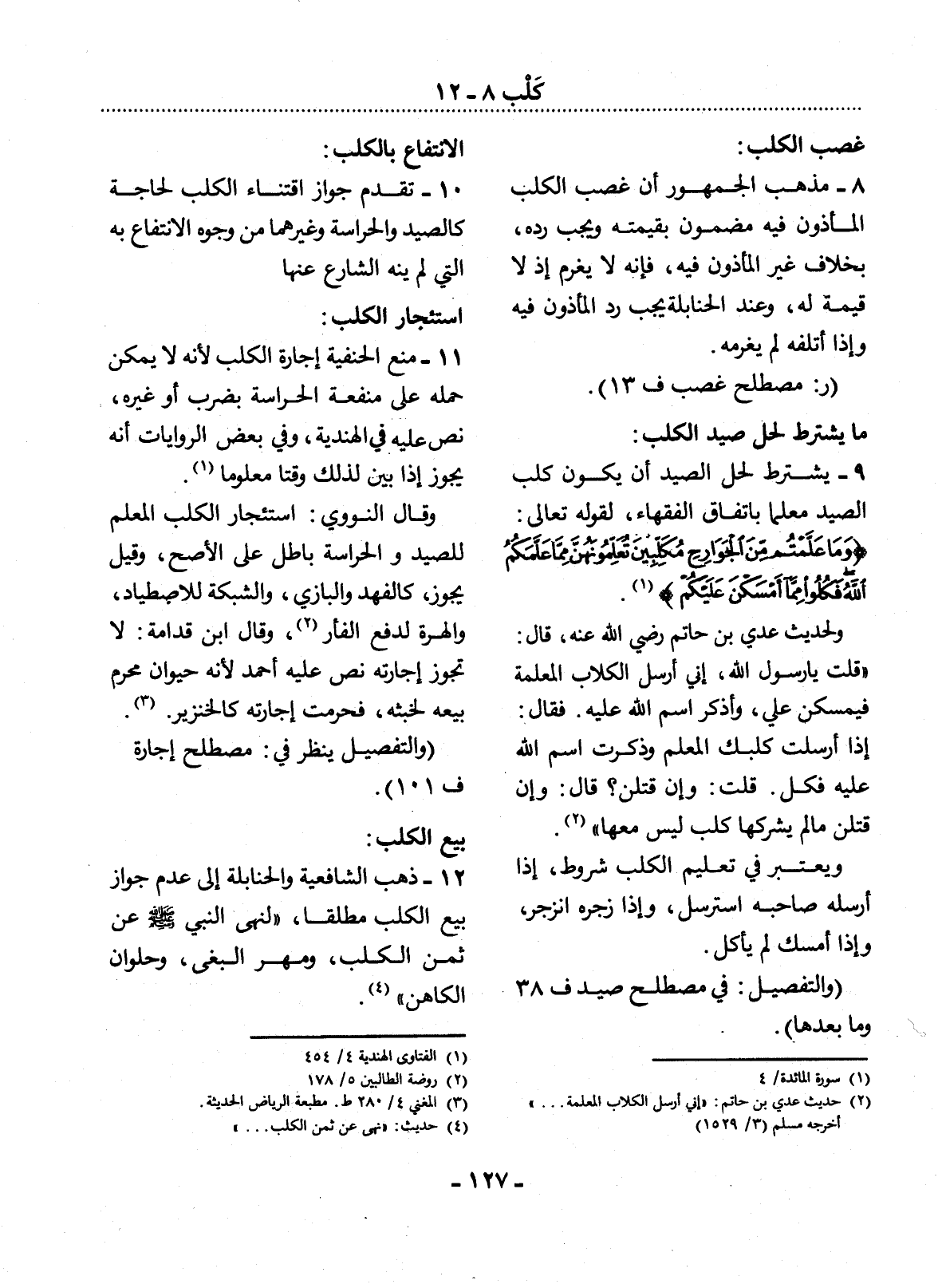(وَالتَّفْصِيل: فِي مُصْطَلَحِ صَيْدٌ ف 38 وَمَا بَعْدَهَا) .