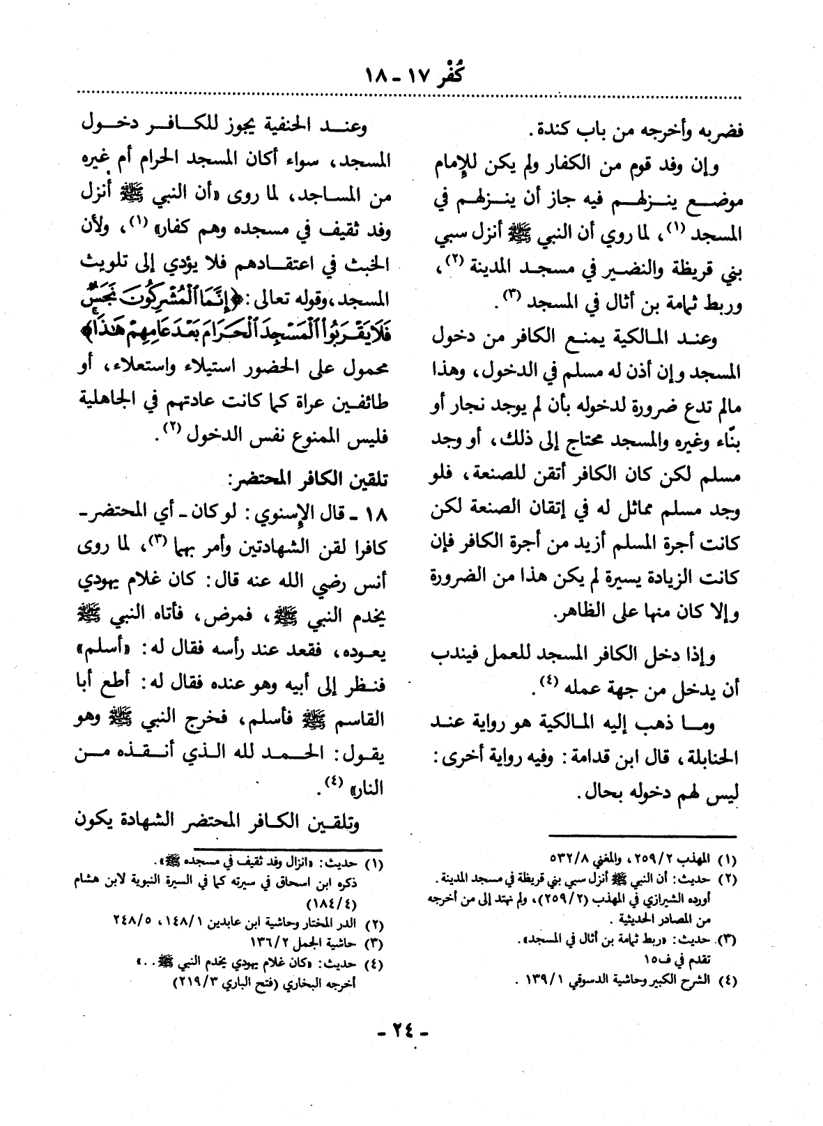 (2) الدر المختار وحاشية ابن عابدين 1 / 148، 5 / 248.