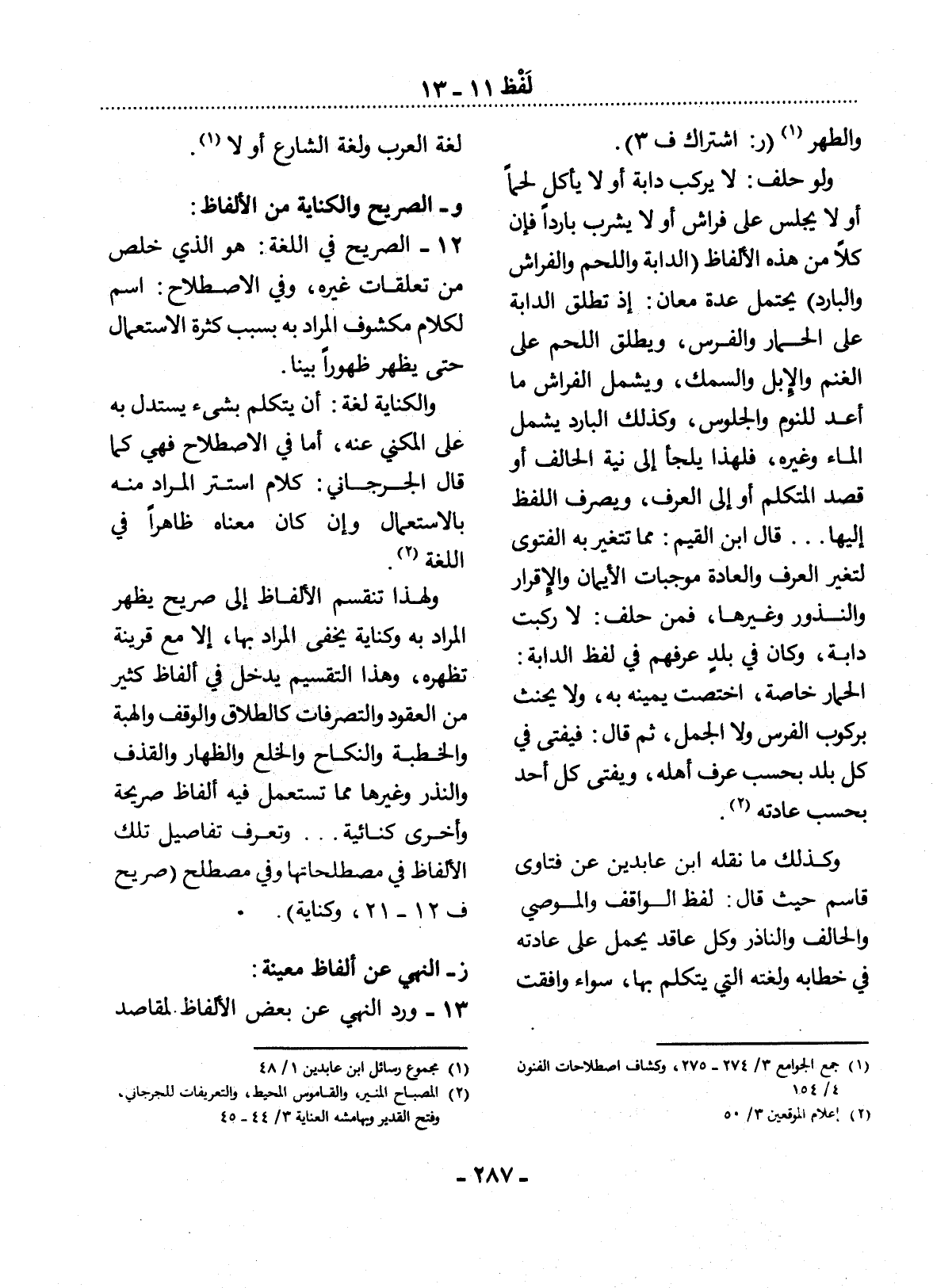 (2) المصباح المنير، والقاموس المحيط، والتعريفات للجرجاني، وفتح القدير وبهامشه العناية 3 / 44 - 45.