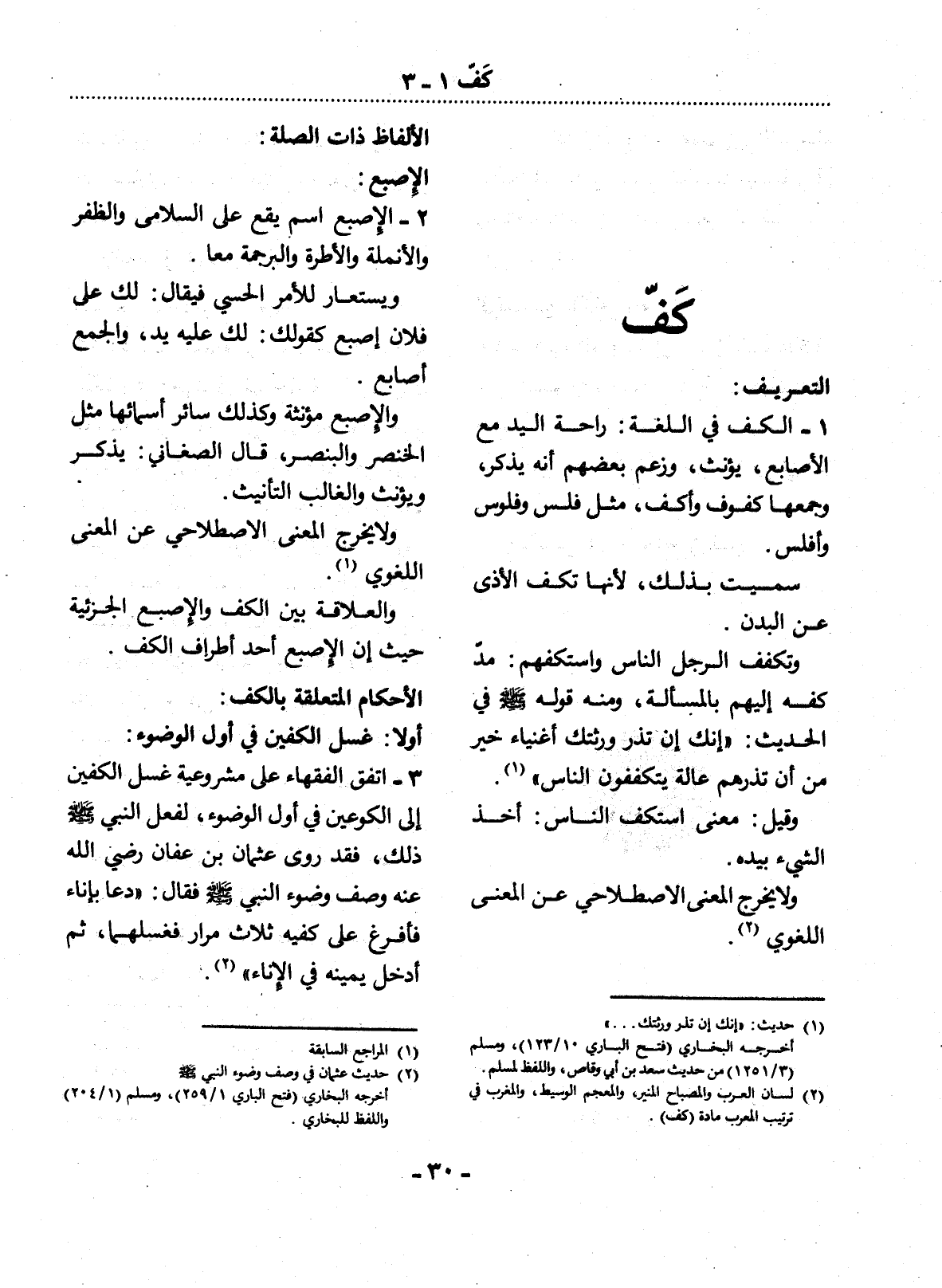 (2) لسان العرب، والمصباح المنير، والمعجم الوسيط، والمغرب في ترتيب المعرب مادة (كف) .