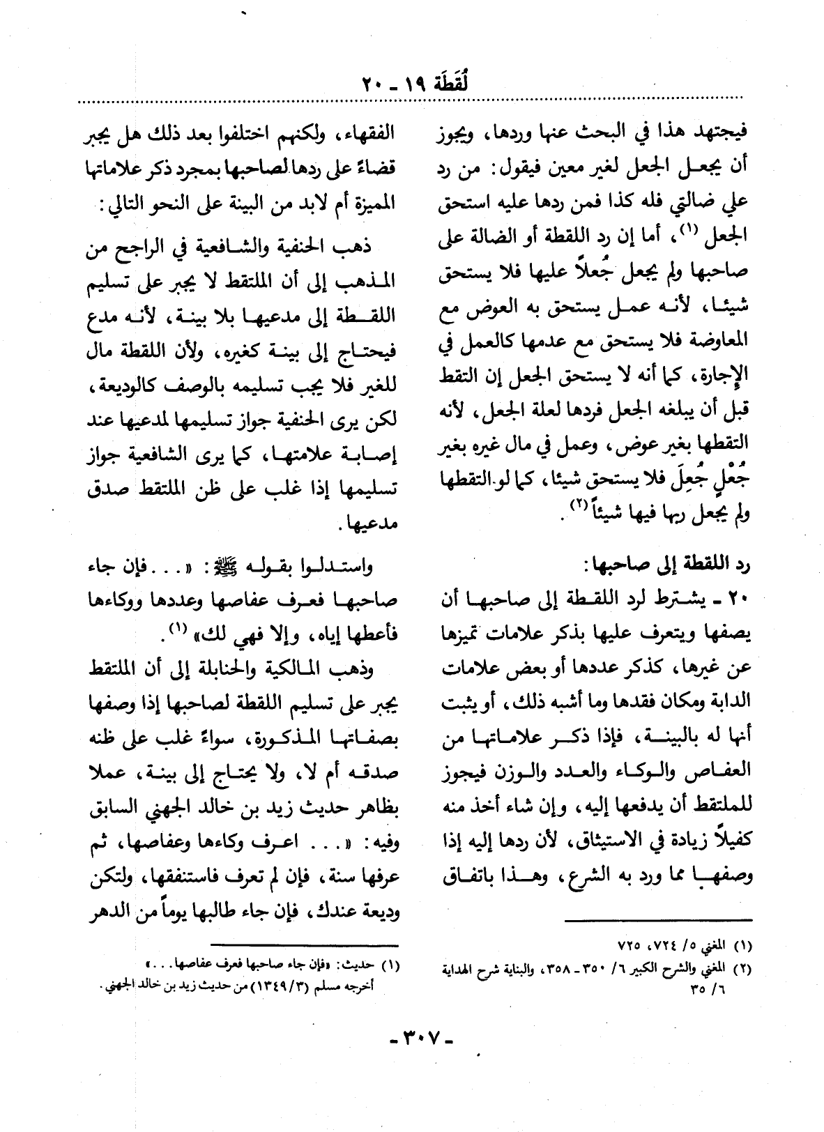 (1) حديث: " فإن جاءها صاحبها فعرف عفاصها. . . ". أخرجه مسلم (3 / 1349) من حديث زيد بن خالد الجهني.