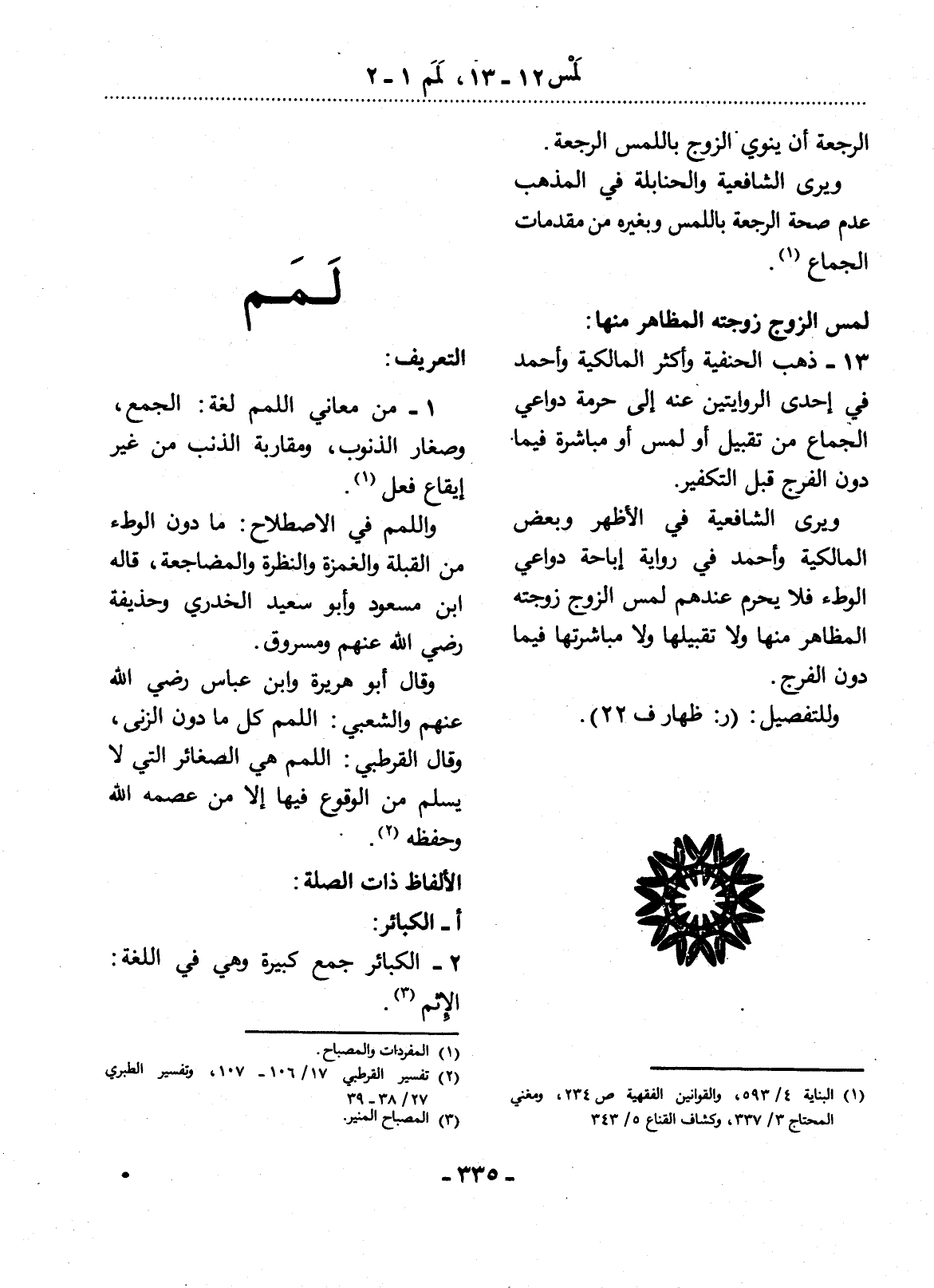 1 - مِنْ مَعَانِي اللَّمَمِ لُغَةً: الْجَمْعُ، وَصِغَارُ الذُّنُوبِ، وَمُقَارَبَةُ الذَّنْبِ مِنْ غَيْرِ إِيقَاعِ فِعْلٍ (1) .