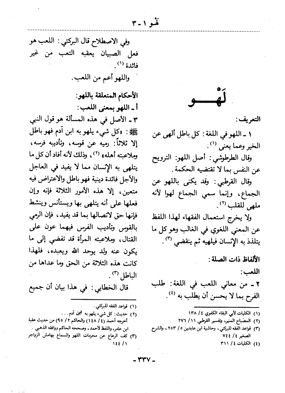الأَْحْكَامُ الْمُتَعَلِّقَةُ بِاللَّهْوِ