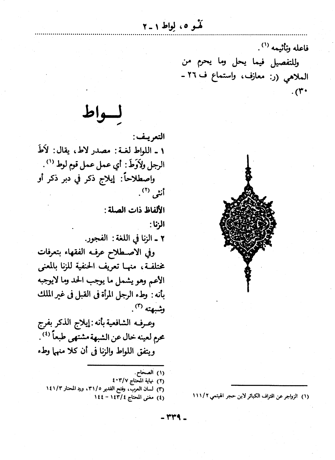 (1) الزواجر عن اقتراف الكبائر لابن حجر الهيتمي 2 / 111.