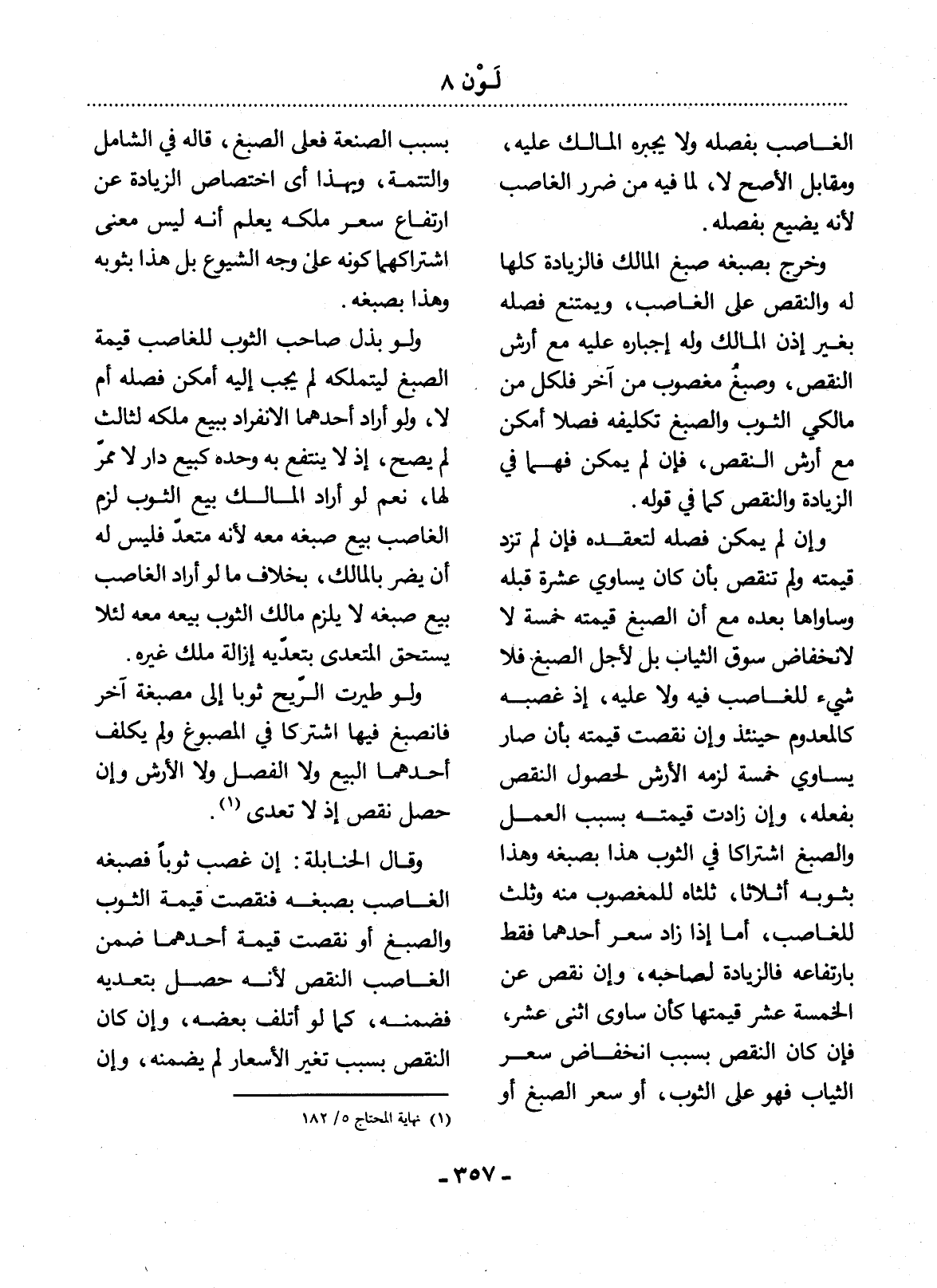 بِسَبَبِ الصَّنْعَةِ فَعَلَى الصِّبْغِ، قَالَهُ فِي الشَّامِل وَالتَّتِمَّةِ، وَبِهَذَا أَيِ اخْتِصَاصِ الزِّيَادَةِ عَنِ ارْتِفَاعِ سِعْرِ مِلْكِهِ يُعْلَمُ أَنَّهُ لَيْسَ مَعْنَى اشْتَرَاكِهِمَا كَوْنُهُ عَلَى وَجْهِ الشُّيُوعِ بَل هَذَا بِثَوْبِهِ وَهَذَا بِصِبْغِهِ.