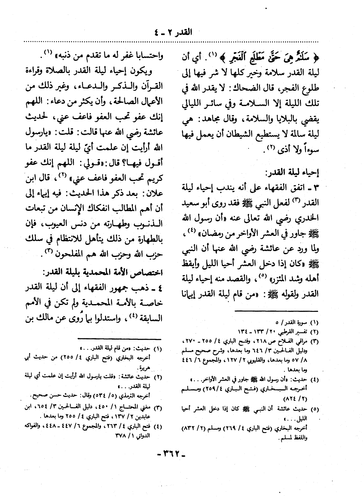 {سَلاَمٌ هِيَ حَتَّى مَطْلَعِ الْفَجْرِ} (1) . أَيْ أَنَّ لَيْلَةَ الْقَدْرِ سَلاَمَةٌ وَخَيْرٌ كُلُّهَا لاَ شَرَّ فِيهَا إِلَى طُلُوعِ الْفَجْرِ،