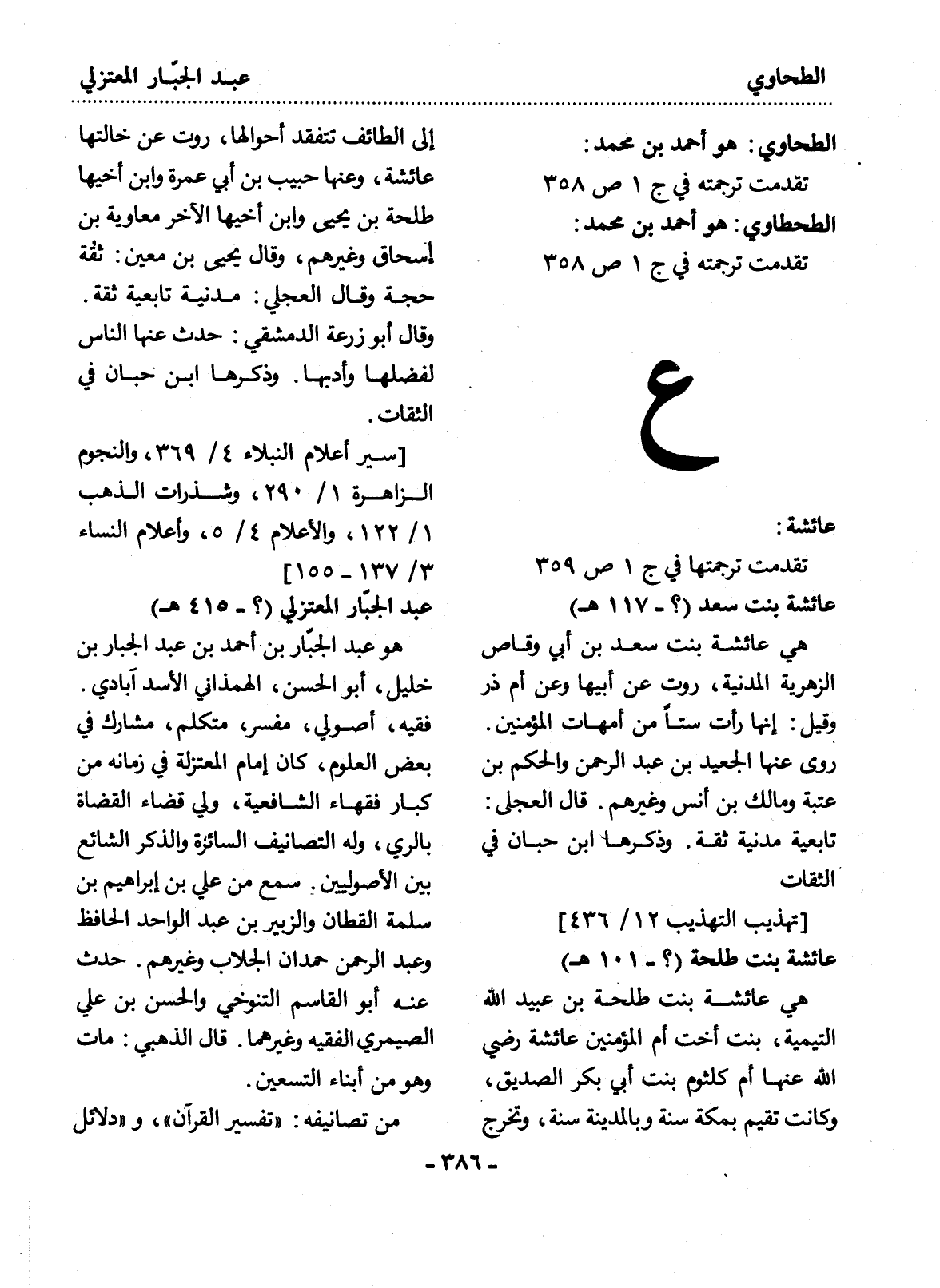 [سير أعلام النبلاء 4 / 369، والنجوم الزاهرة 1 / 290، وشذرات الذهب 1 / 122، والأعلام 4 / 5، وأعلام النساء 3 / 137 - 155] .