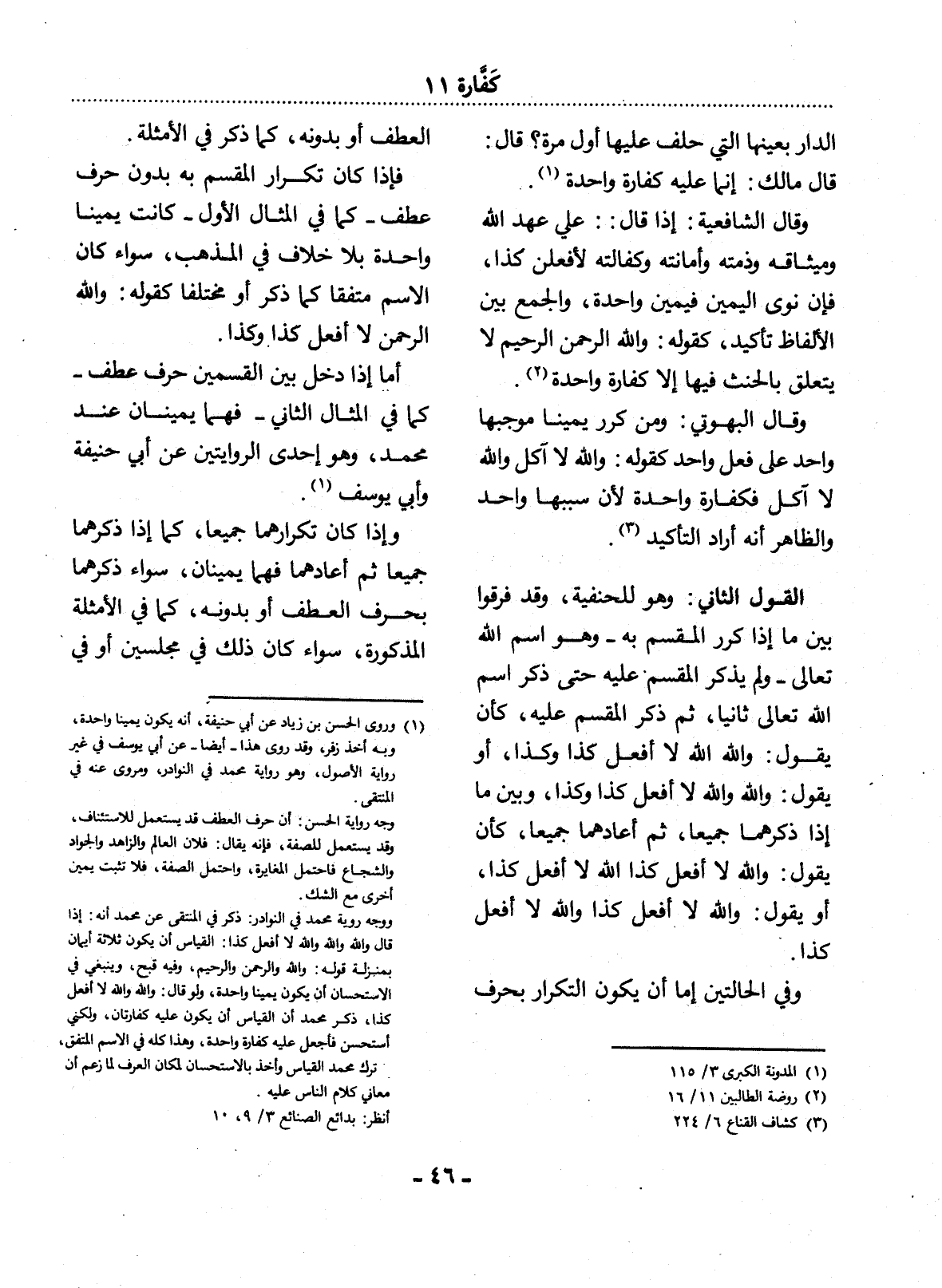 الدَّارَ بِعَيْنِهَا الَّتِي حَلَفَ عَلَيْهَا أَوَّل مَرَّةٍ؟ قَال: قَال مَالِكٌ: إِنَّمَا عَلَيْهِ كَفَّارَةٌ وَاحِدَةٌ (1) . وَقَال الشَّافِعِيَّةُ: إِذَا قَال: عَلَيَّ عَهْدُ اللَّهِ وَمِيثَاقُهُ وَذِمَّتُهُ وَأَمَانَتُهُ وَكَفَالَتُهُ لأََفْعَلَنَّ كَذَا، فَإِنْ نَوَى الْيَمِينَ فَيَمِينٌ وَاحِدَةٌ، وَالْجَمْعُ بَيْنَ الأَْلْفَاظِ تَأْكِيدٌ، كَقَوْلِهِ: وَاللَّهِ الرَّحْمَنِ الرَّحِيمِ لاَ يَتَعَلَّقُ بِالْحِنْثِ فِيهَا إِلاَّ كَفَّارَةٌ وَاحِدَةٌ (2) .