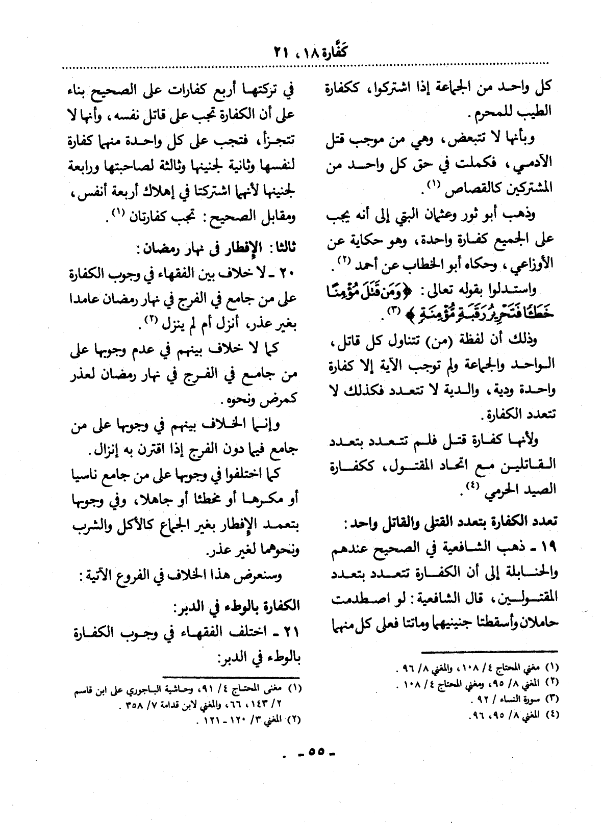 (1) مغني المحتاج 4 / 91، وحاشية الباجوري على ابن قاسم 2 / 143، 66، والمغني لابن قدامة 7 / 358.