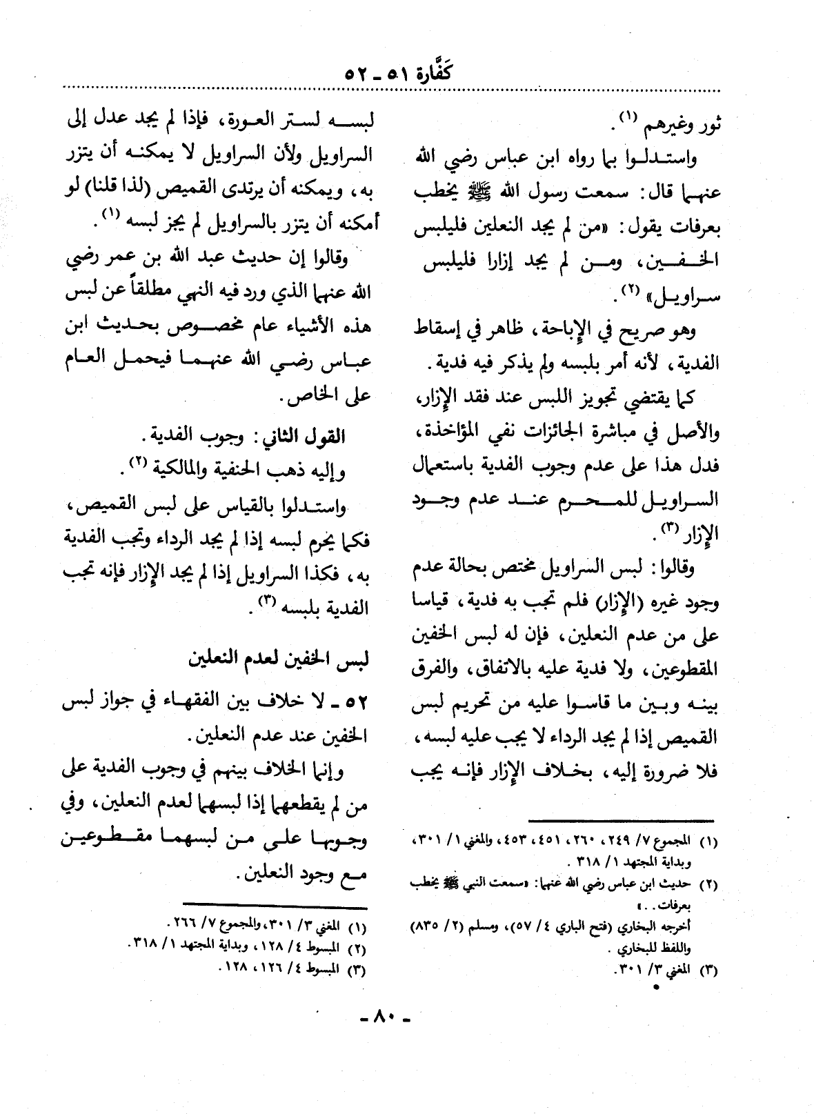 52 - لاَ خِلاَفَ بَيْنَ الْفُقَهَاءِ فِي جَوَازِ لُبْسِ الْخُفَّيْنِ عِنْدَ عَدَمِ النَّعْلَيْنِ.