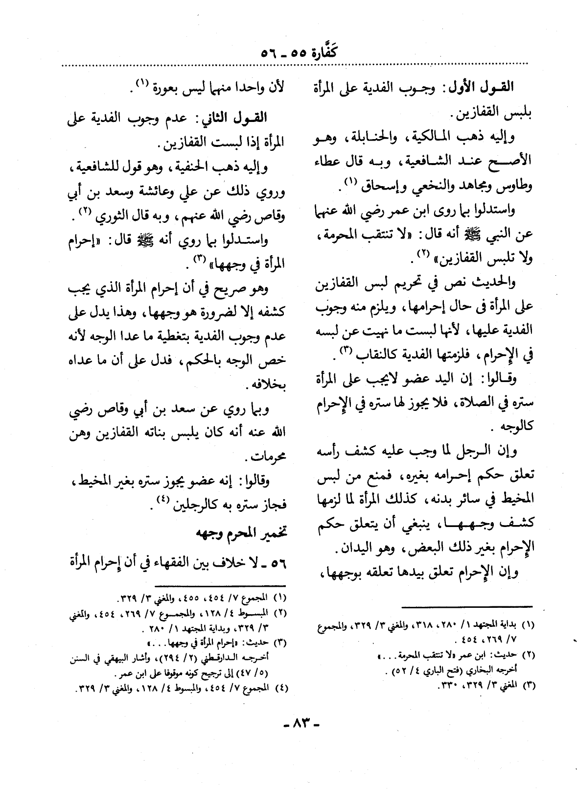 (1) بداية المجتهد 1 / 280، 318، والمغني 3 / 329، والمجموع 7 / 269، 454.