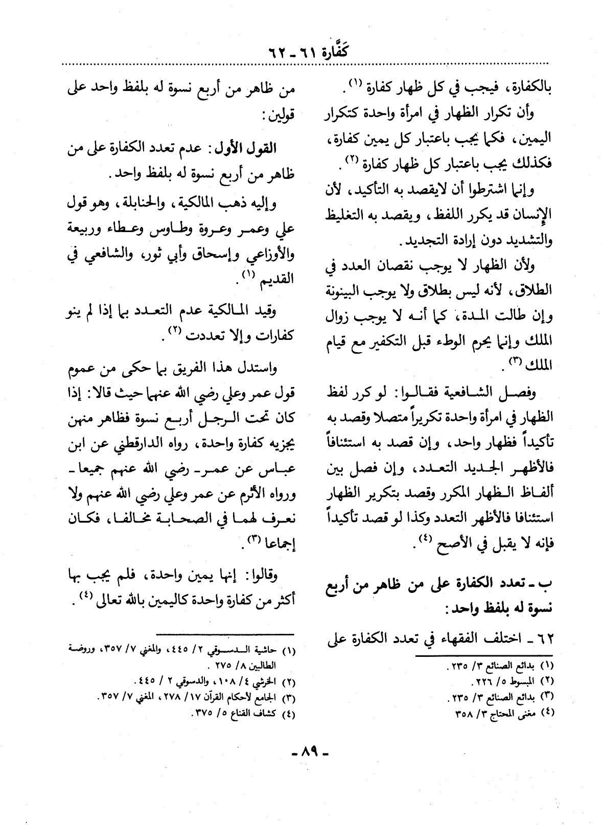 62 - اخْتَلَفَ الْفُقَهَاءُ فِي تَعَدُّدِ الْكَفَّارَةِ عَلَى